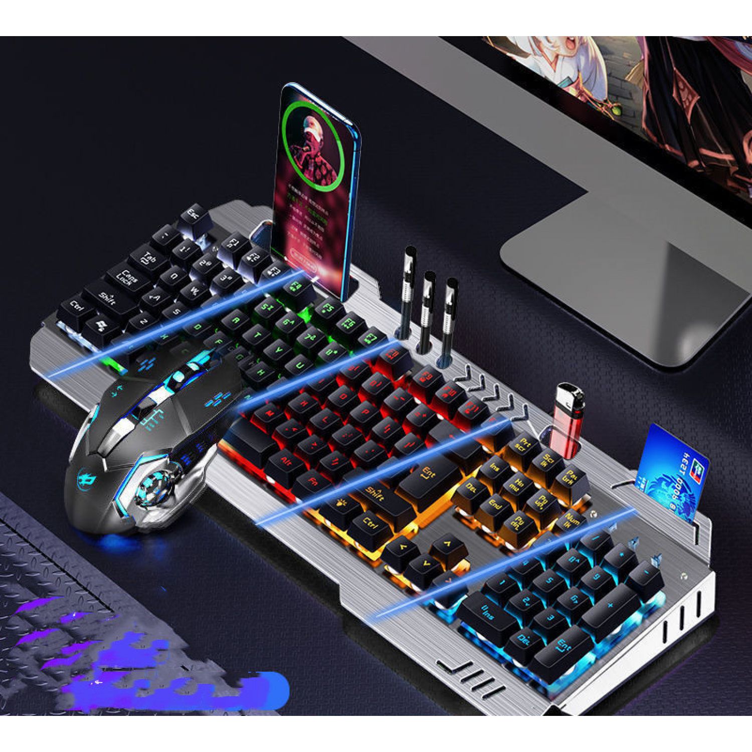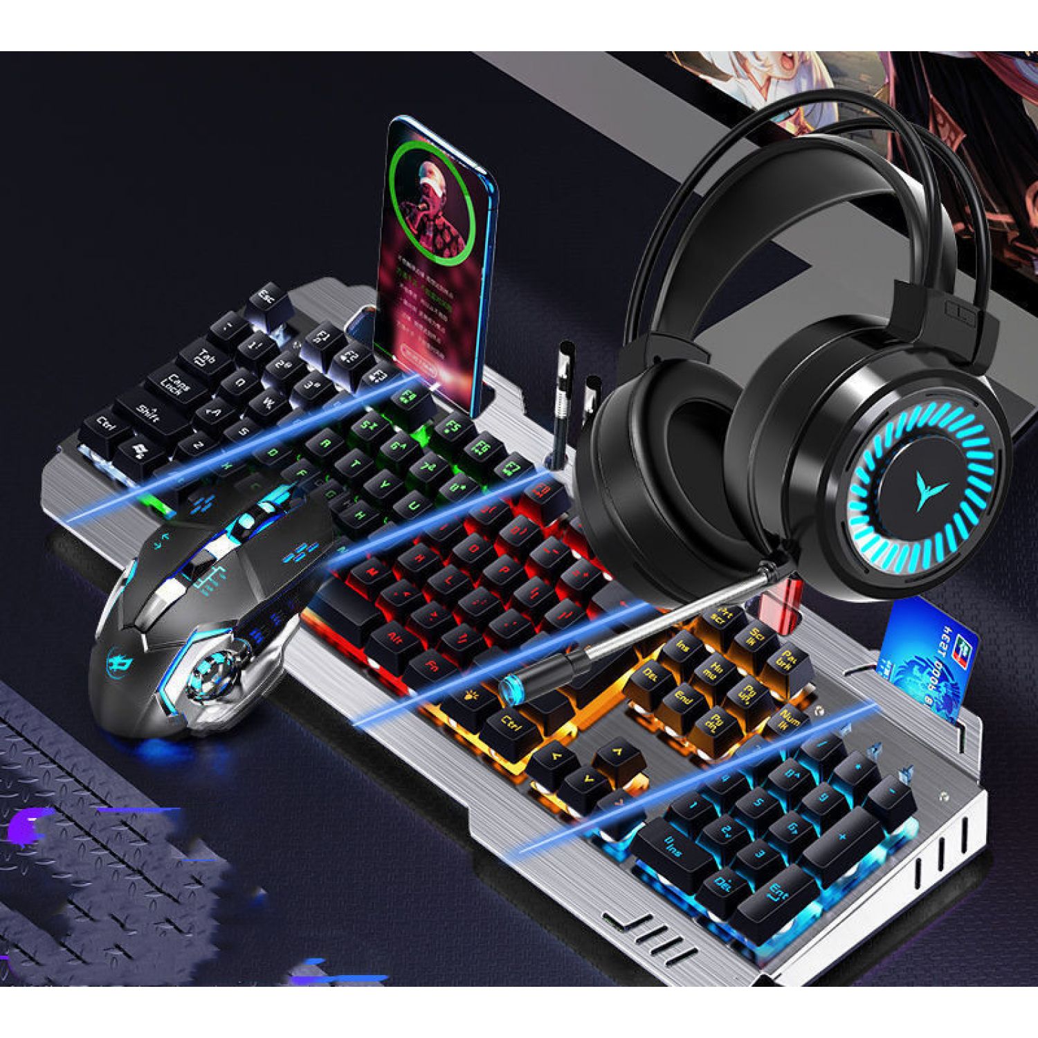 Color: Metal Black [mixed light] multi-function model, metal black [orange light] multi-function model, silver white [ice blue light] multi-function model, silver white [rainbow light] multi-function model, metal black [adjustable light color] 8 kinds of light effect upgrades, metal black [adjustable light color] 8 kinds of light effect upgrades, silver white [adjustable light color] 8 kinds of light effect upgrades, metal black [adjustable 100 kinds of light effect flagship upgrades], Silver white [adjustable 100 kinds of lamp effect flagship upgrade], metal black [rainbow light] multi-function version + macro mouse, metal black [orange light] multi-function version + macro mouse, silver white [rainbow light] multi-function version + macro mouse, silver white [ice blue light] multi-function version + macro mouse, [adjustable lamp color] 8 kinds of lamp effect upgrades + macro mouse, and [adjustable lamp color] 8 kinds of lamp effect upgrades + macro mouse, Silver white [8 kinds of lamp effect upgrade] + macro mouse, metal black [100 kinds of lamp effect flagship] + macro mouse, silver white [100 kinds of lamp effect flagship] + macro mouse, metal black [mixed light] multi-function model + macro mouse + headset, silver white [rainbow light] multi-function version + macro mouse + headset, silver white [ice blue light] multi-function version + macro mouse + headset, Black [red] 8 kinds of light effects + macro mouse + earphone, black [blue] 8 kinds of light effects + macro mouse + earphone, silver white 8 kinds of light effects flagship + macro mouse + earphone, black [100 kinds of light effects flagship] + mouse + earphone, white [100 kinds of light effects flagship] + mouse + earphone