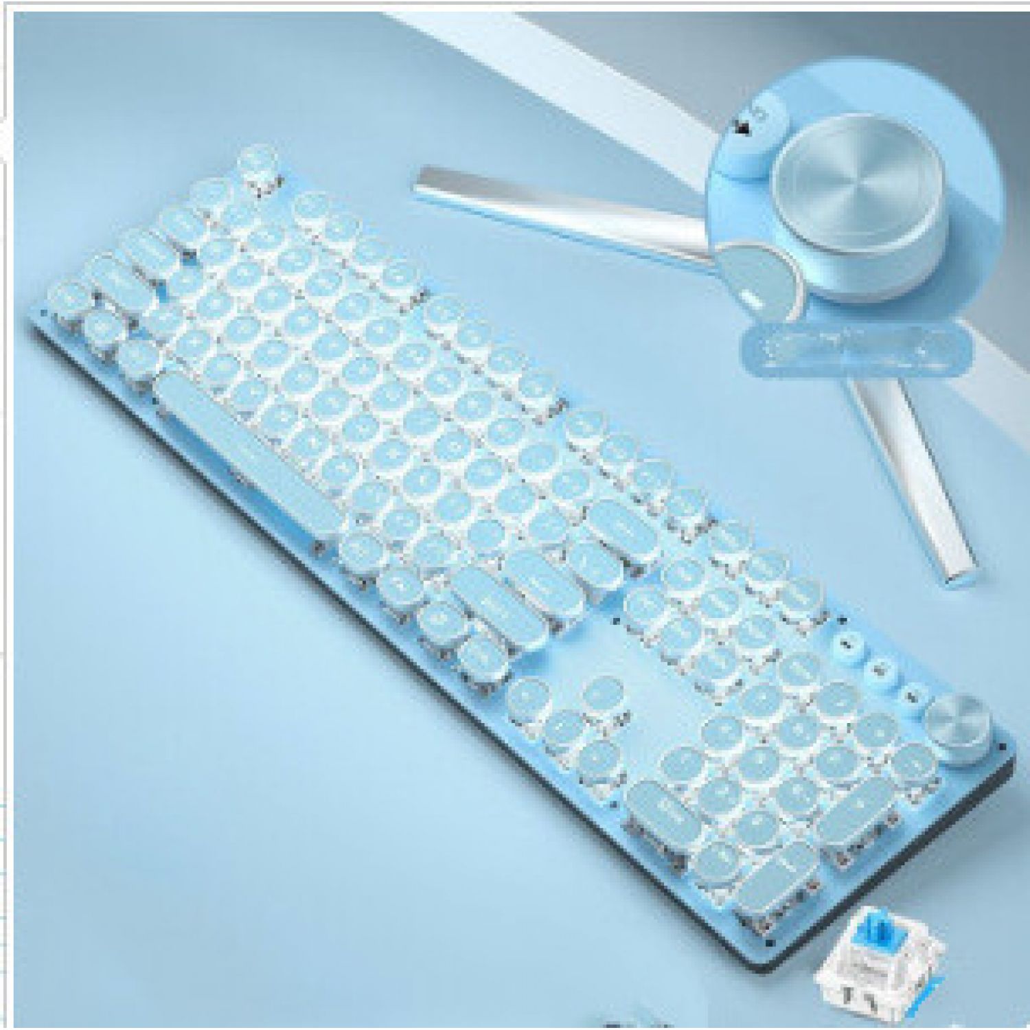 Color: Sky blue [white light-green axis] wired knob flagship version, sky blue [white light-green axis] wired knob flagship version + high-quality wired headset, white light-emitting dual-hole headset, blue audio mouse macro programming, blue green axis White light punk knob version