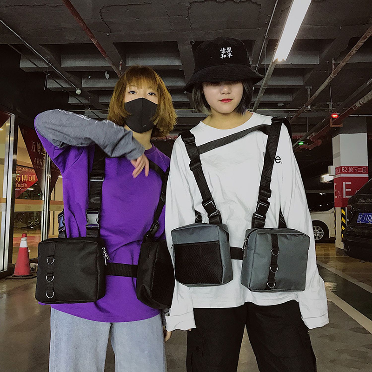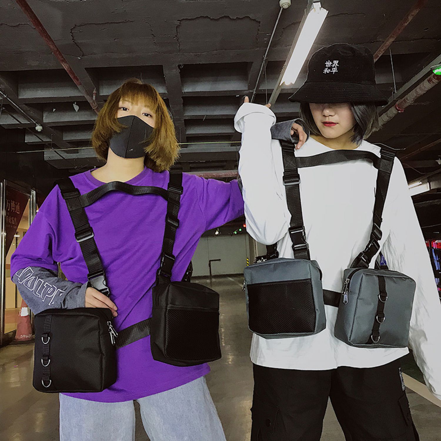 Men and women double pack chicken bag gray