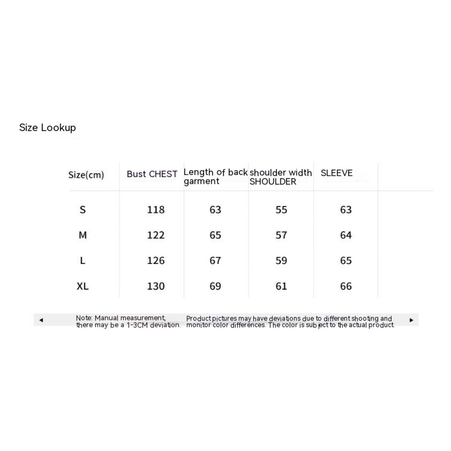 1. Asian sizes are 1 to 2 sizes smaller than European and American people. Choose the larger size if your size between two sizes. Please allow 2-3cm differences due to manual measurement. 2. Please check the size chart carefully before you buy the item, if you don't know how to choose size, please contact our customer service. 3.As you know, the different computers display colors differently, the color of the actual item may vary slightly from the following images.