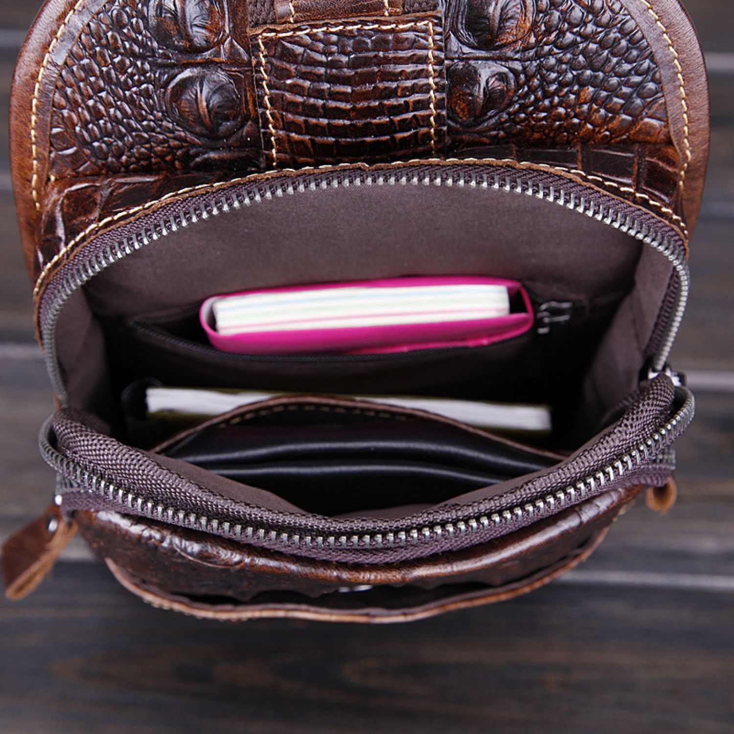 Internal structure of the bag: zippered pocket, mobile phone bag, ID bag.