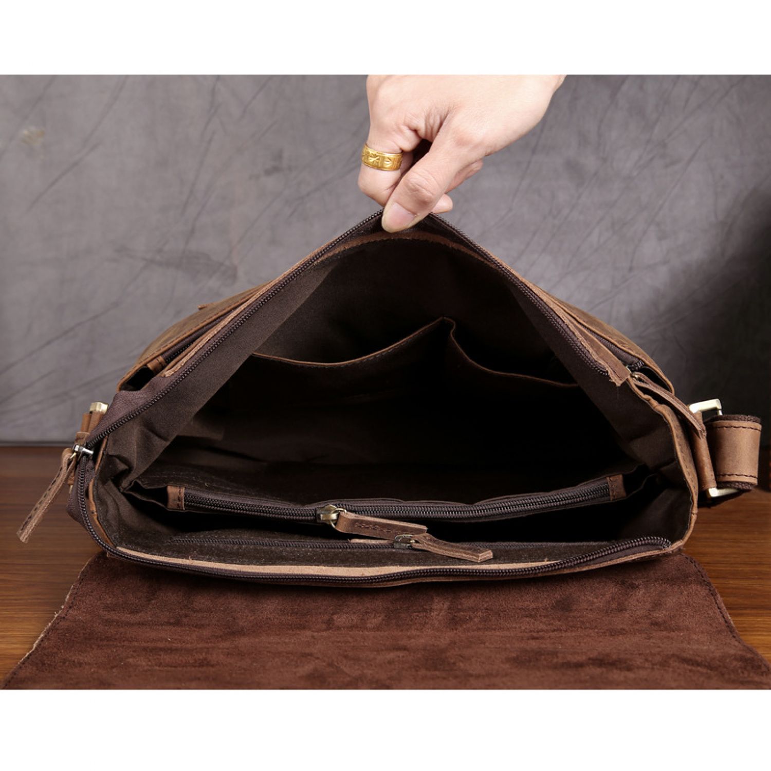 Men's Crazy Horse Leather Top Layer Cowhide Messenger Bag Brown