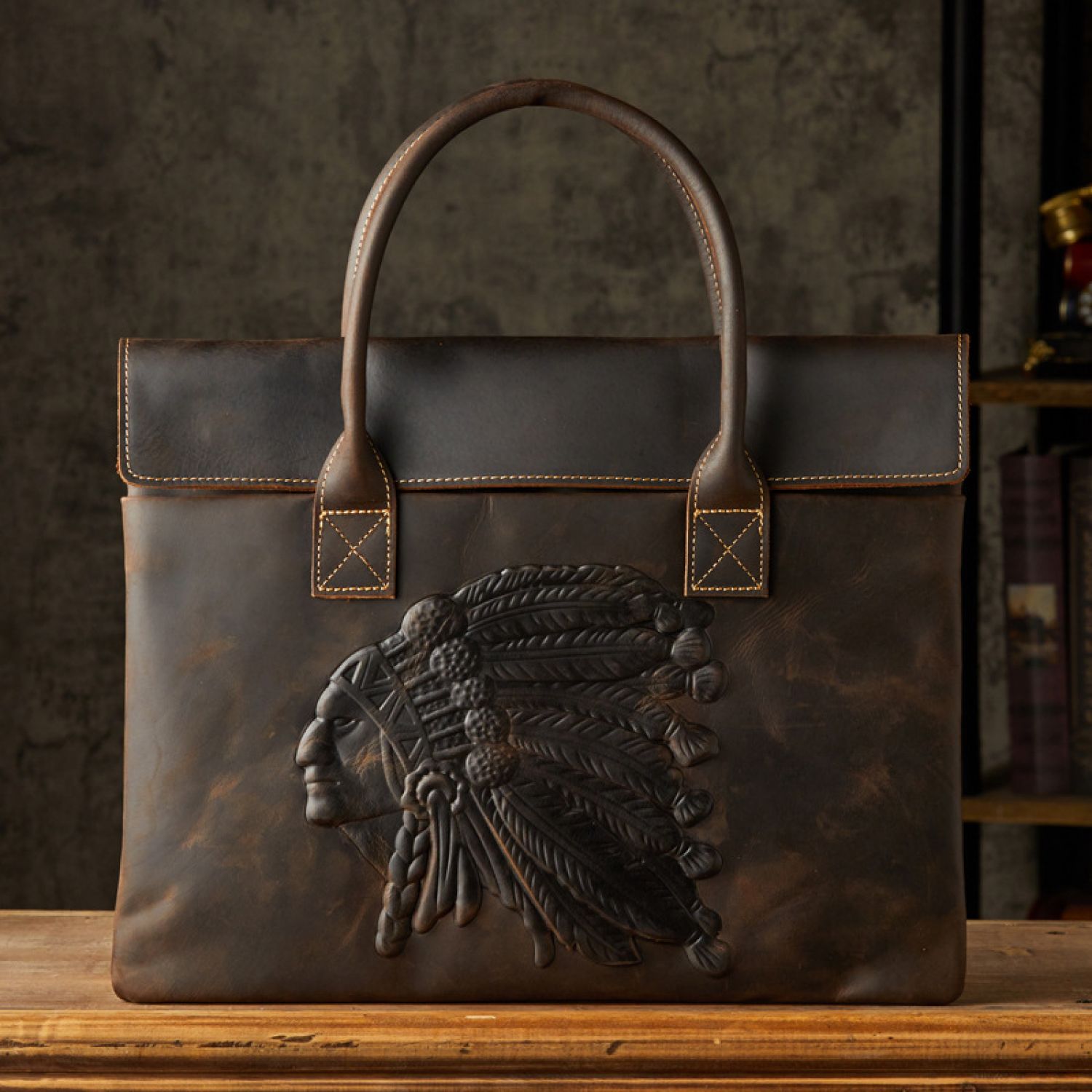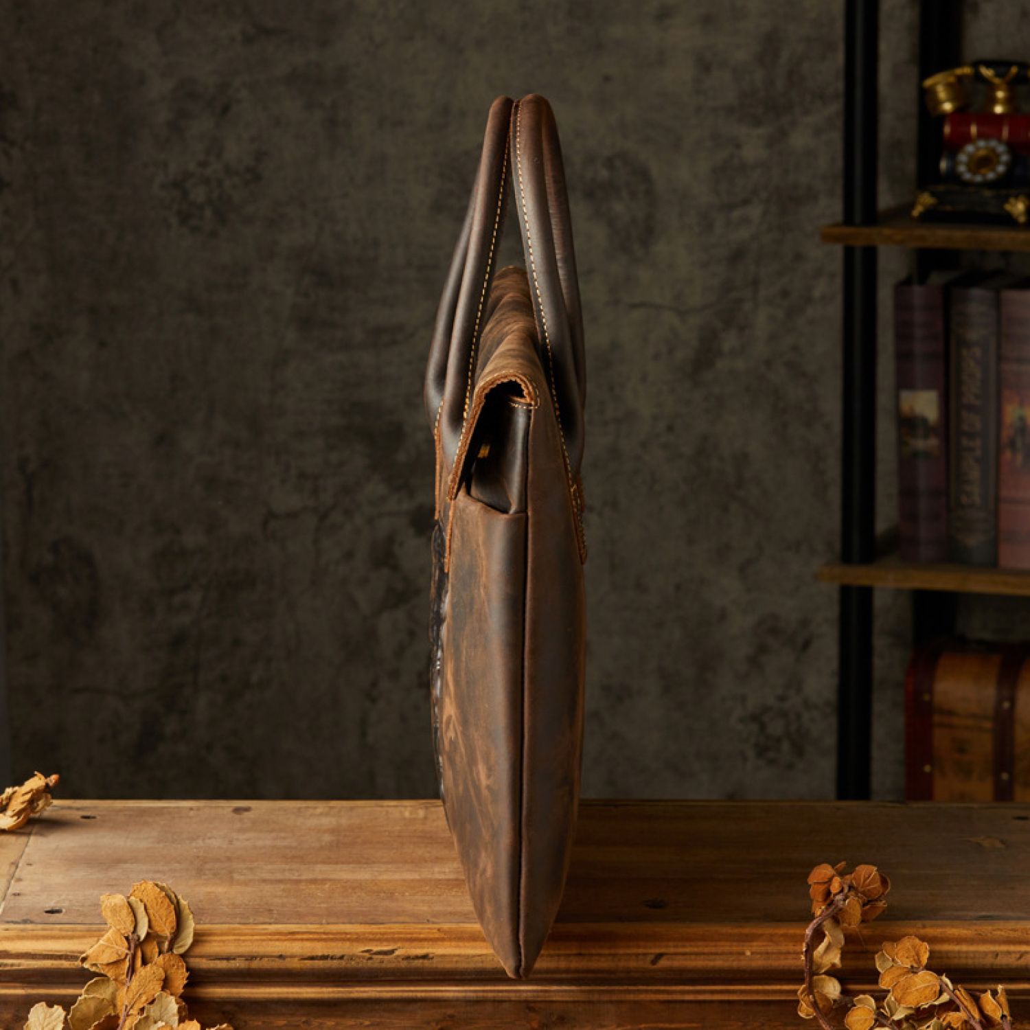 Men's Leather Business Casual Lightweight Briefcase Dark brown S