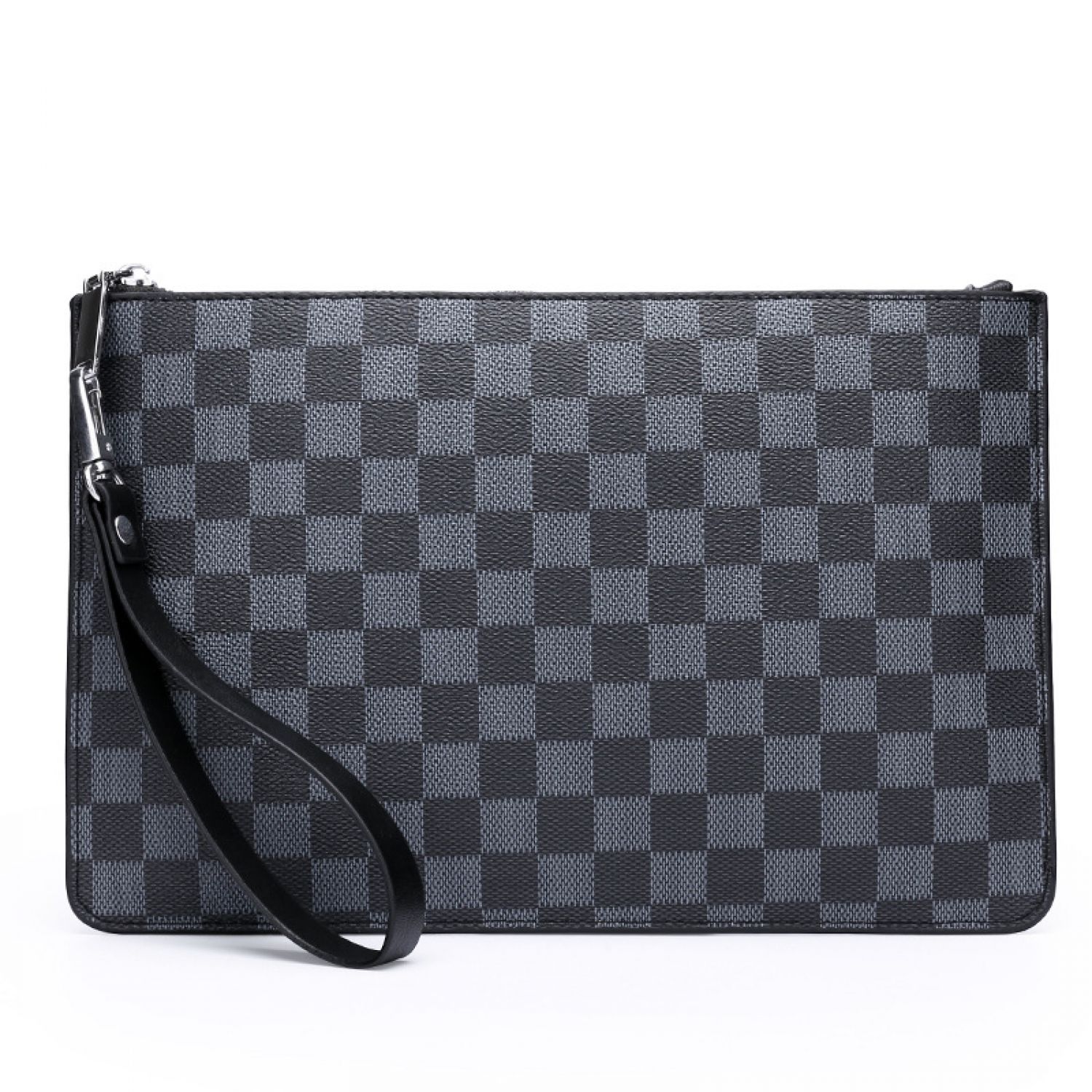 Men's Soft Pu Plaid Business Casual Clutch Checkered black