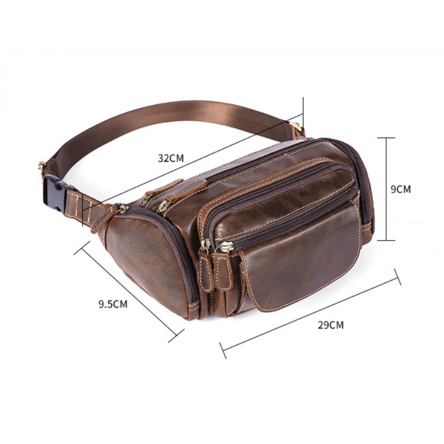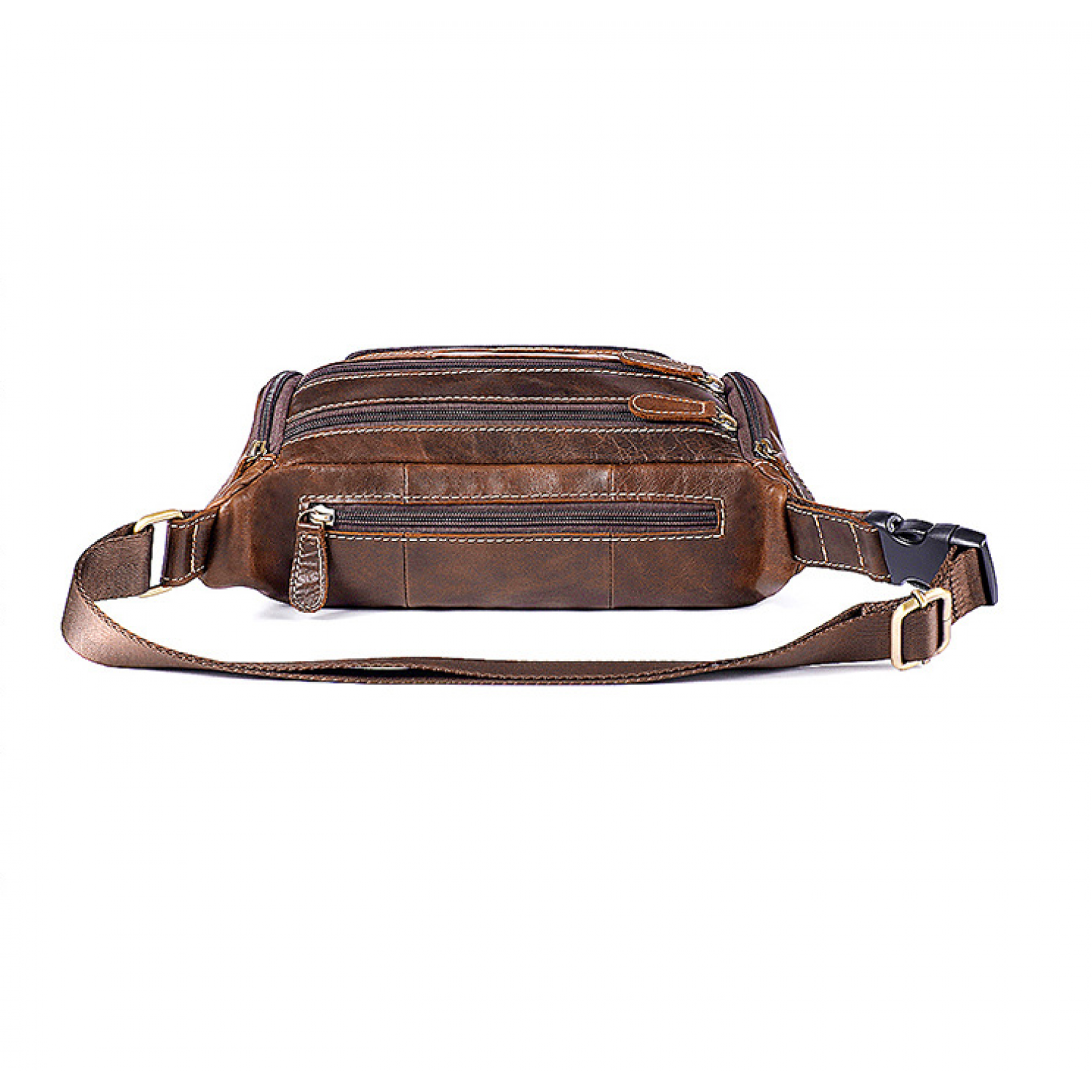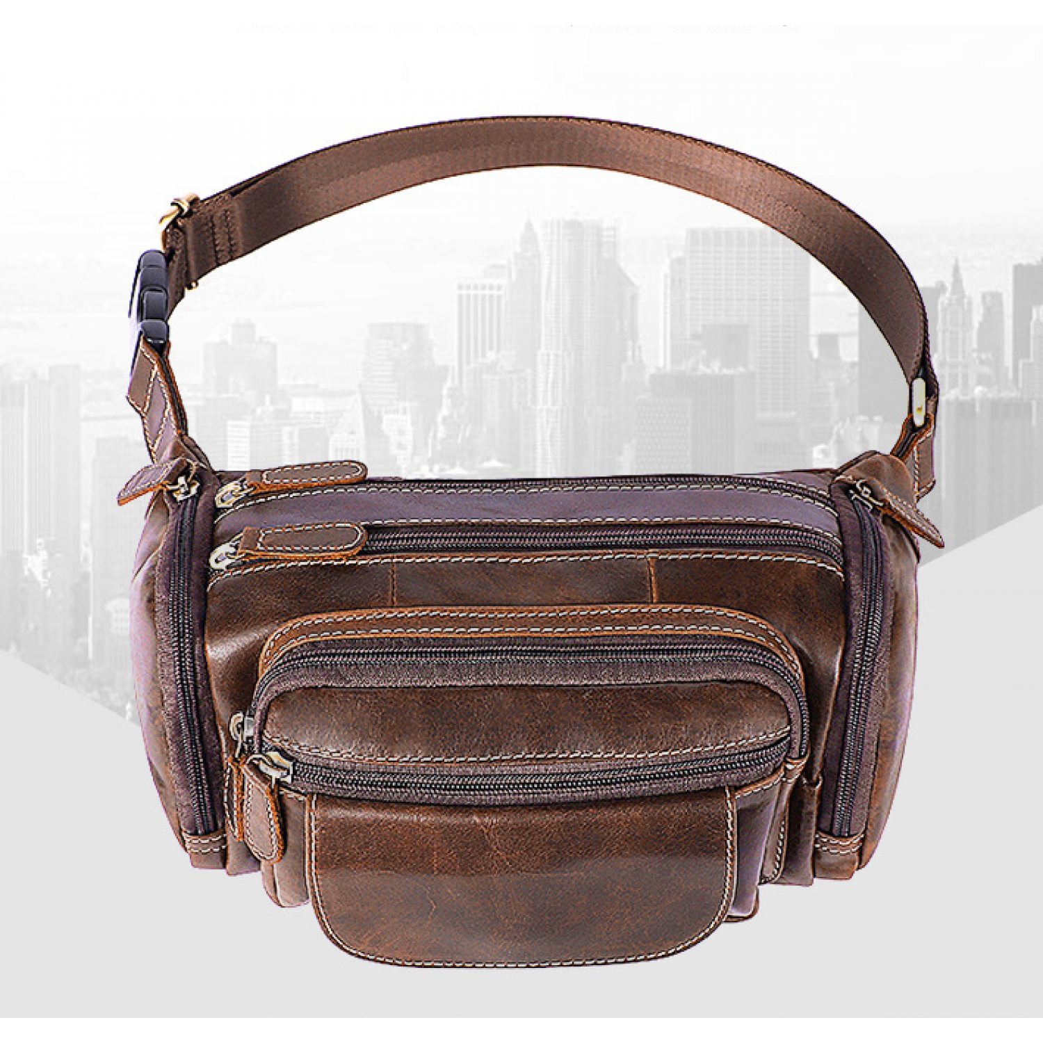 Men's waist bag with leather on the top Oil coffee