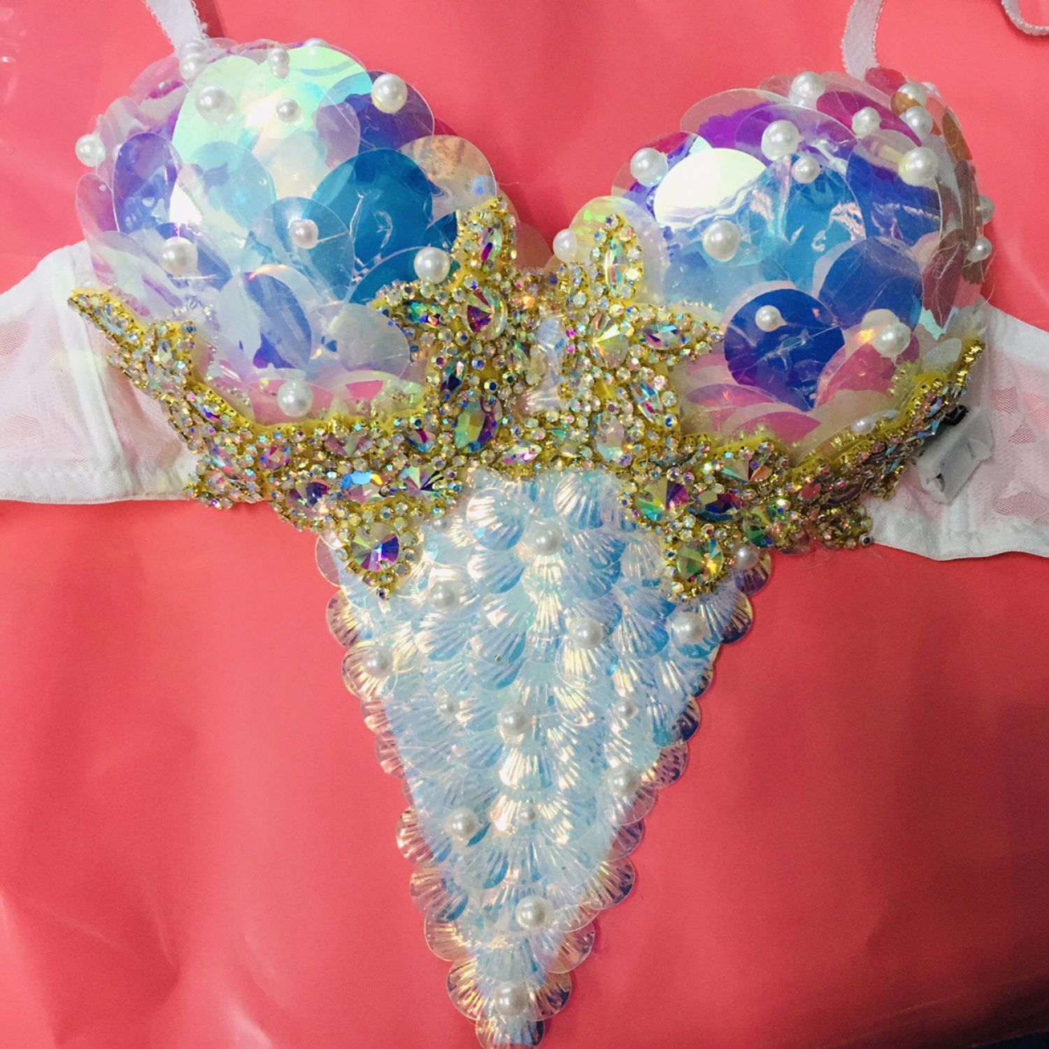 Mermaid Bra Diving Suit Fish Scale Sequins Silver S