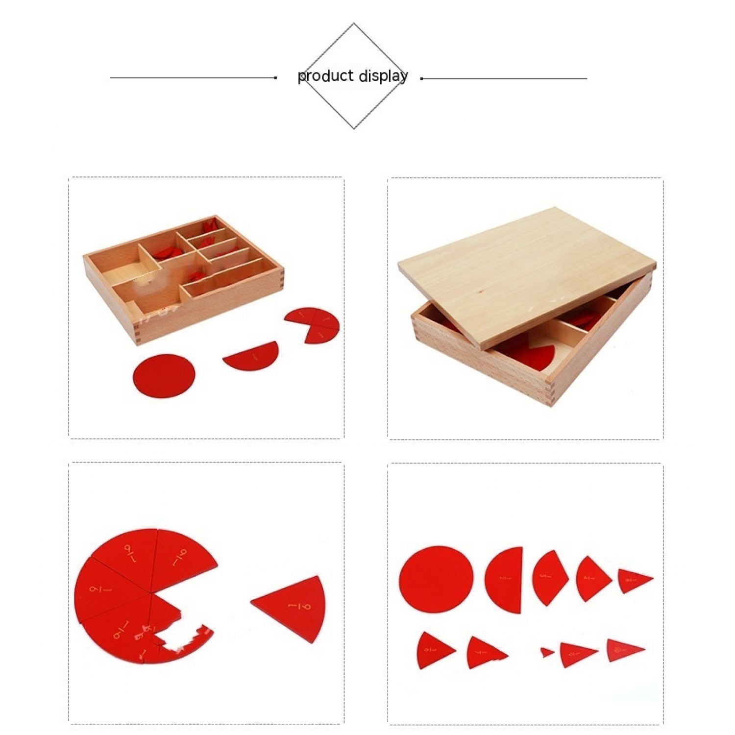Montessori Primary School Mathematics Teaching Aids Wooden Round Decomposition Angle Meter Angle Plate