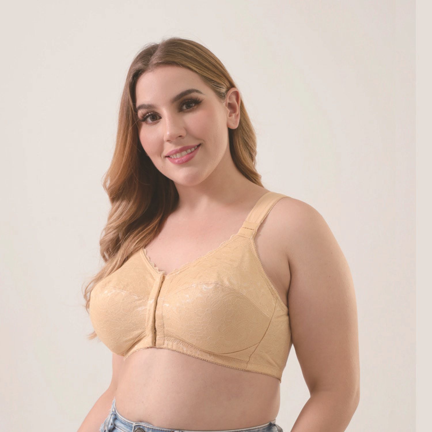 New Large Size Bra Push Up Thin Front Button Underwear Flesh 115G standard 50G