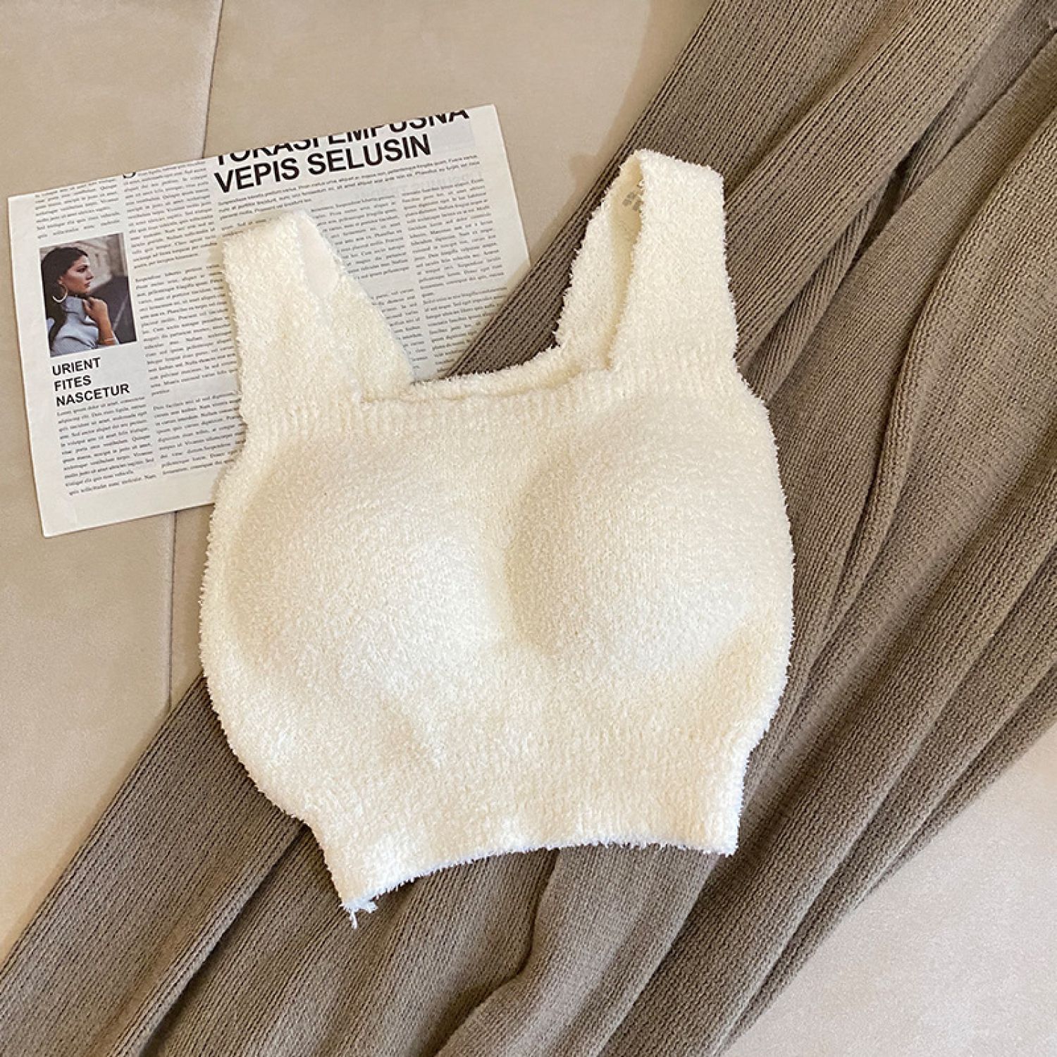 New Wool Knitted Self-heating Thermal Bra White M