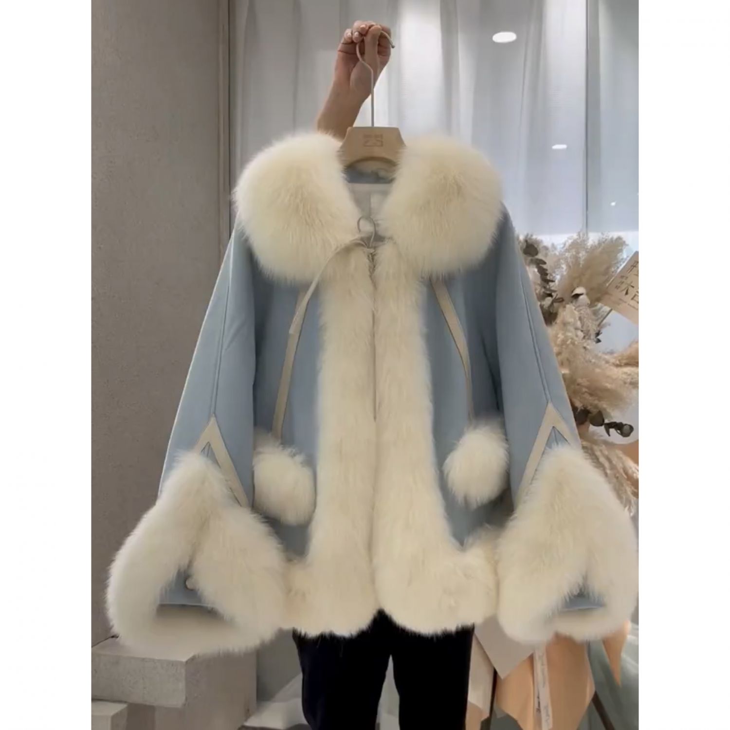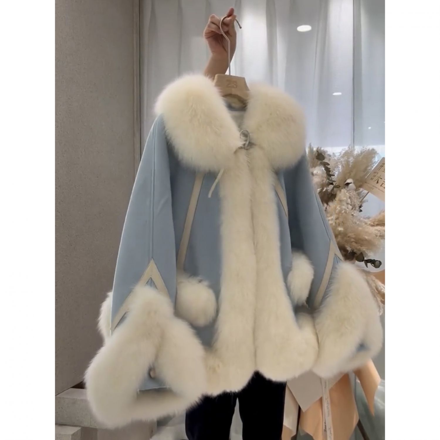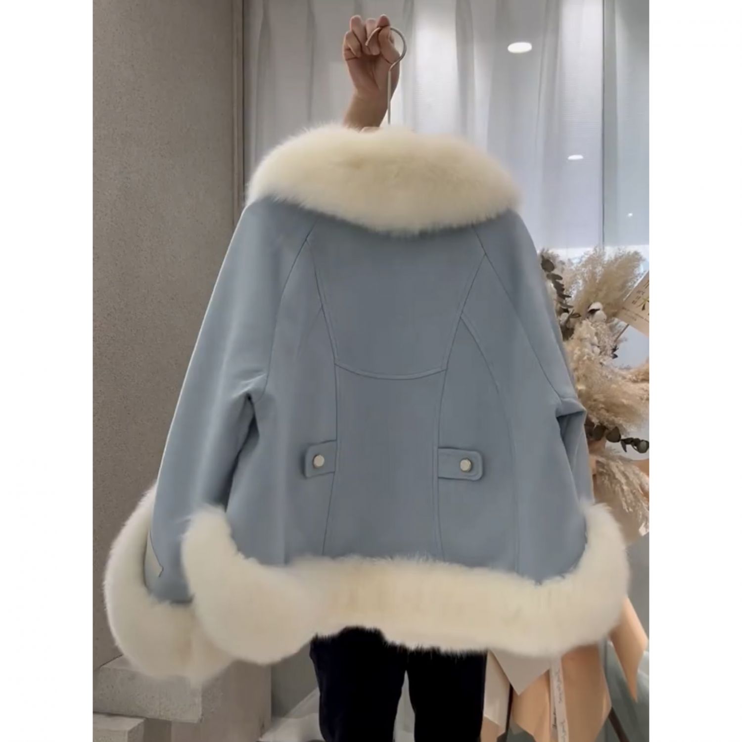 One Piece Patchwork Fur Coat For Women Sky Blue S