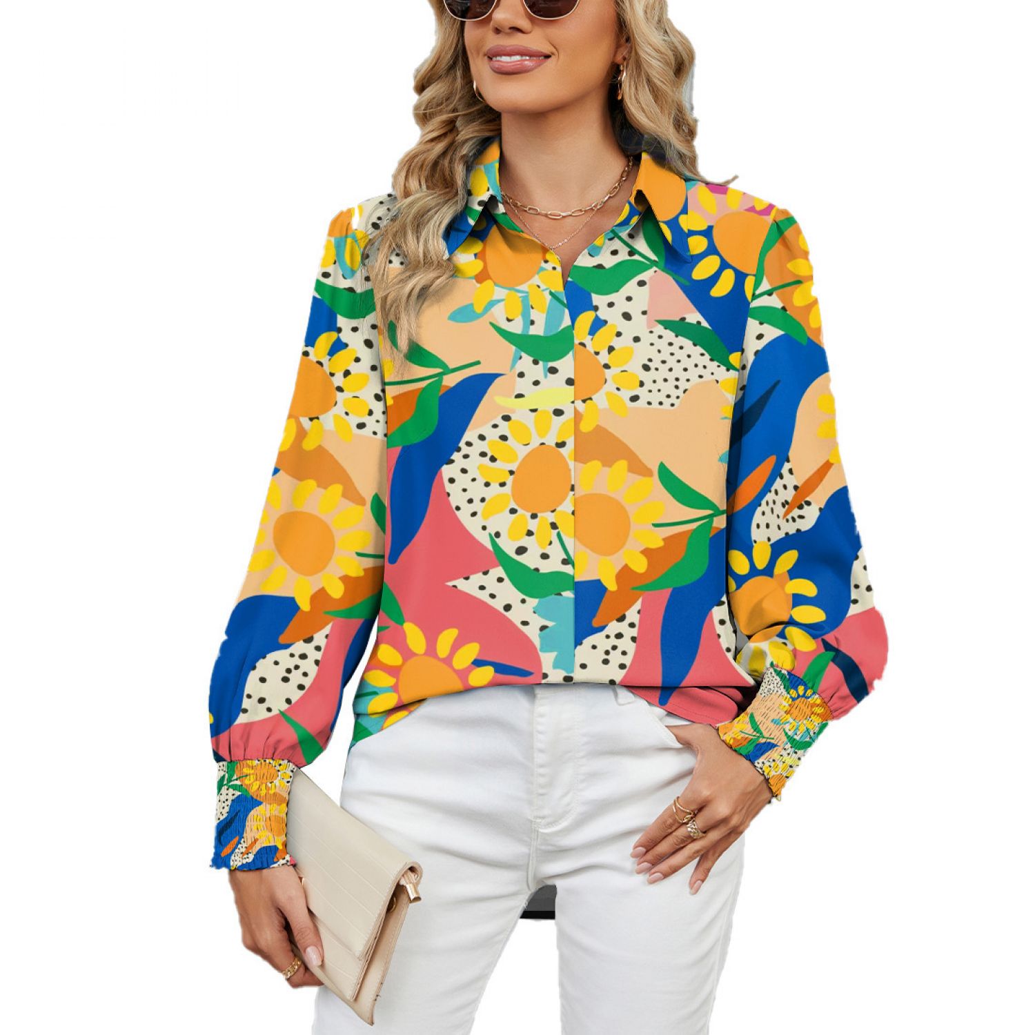 Color: little blue flowers, sunflower, leaf-shaped flower, red and green pattern, blue and green flower