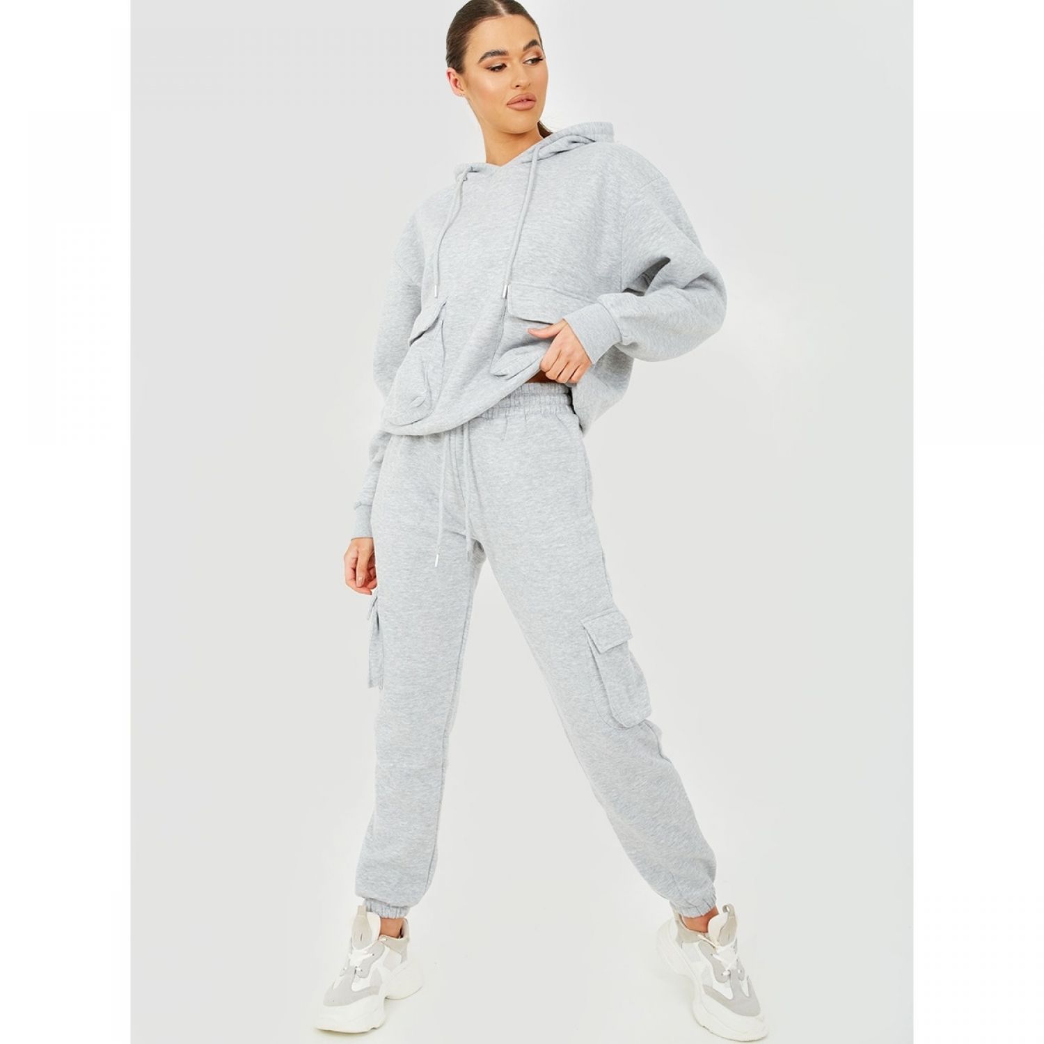 Utility Pocket Hooded Top & Trousers Fleece Co-Ord Grey