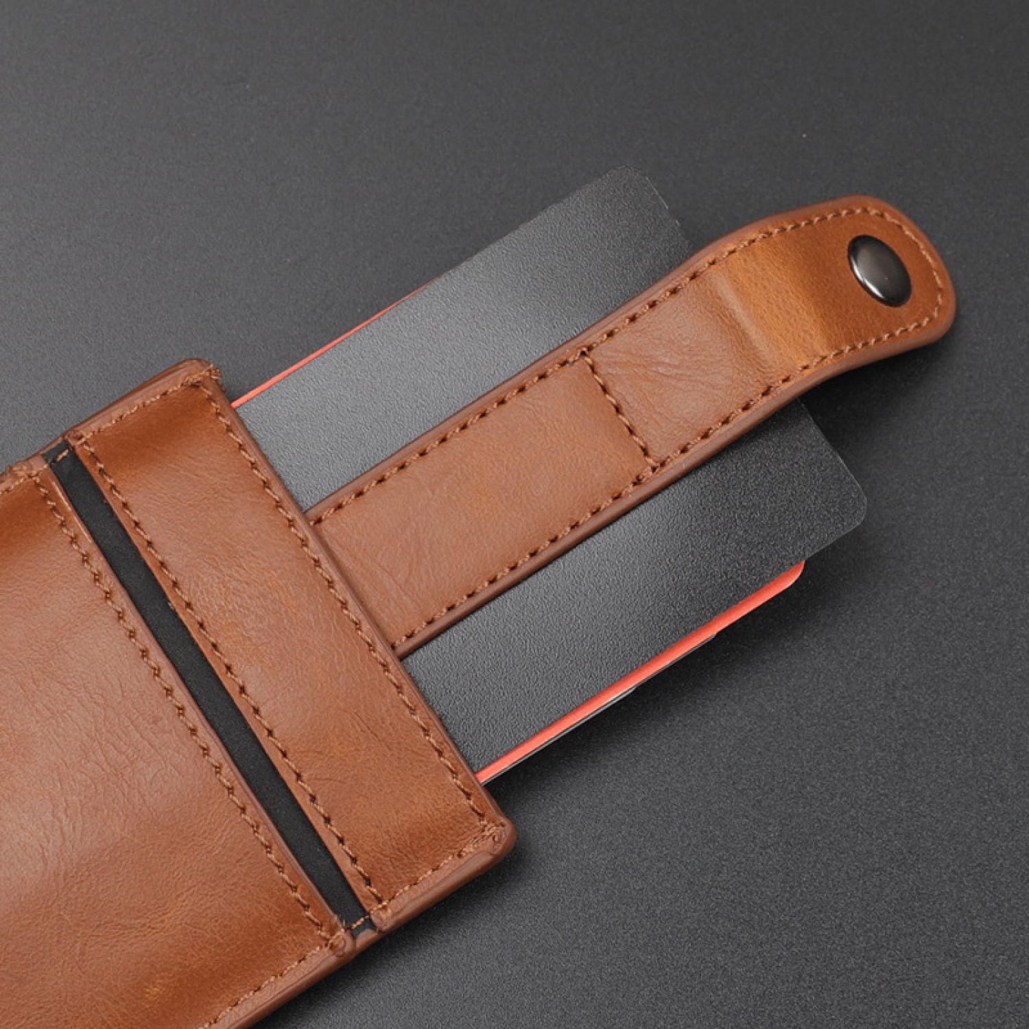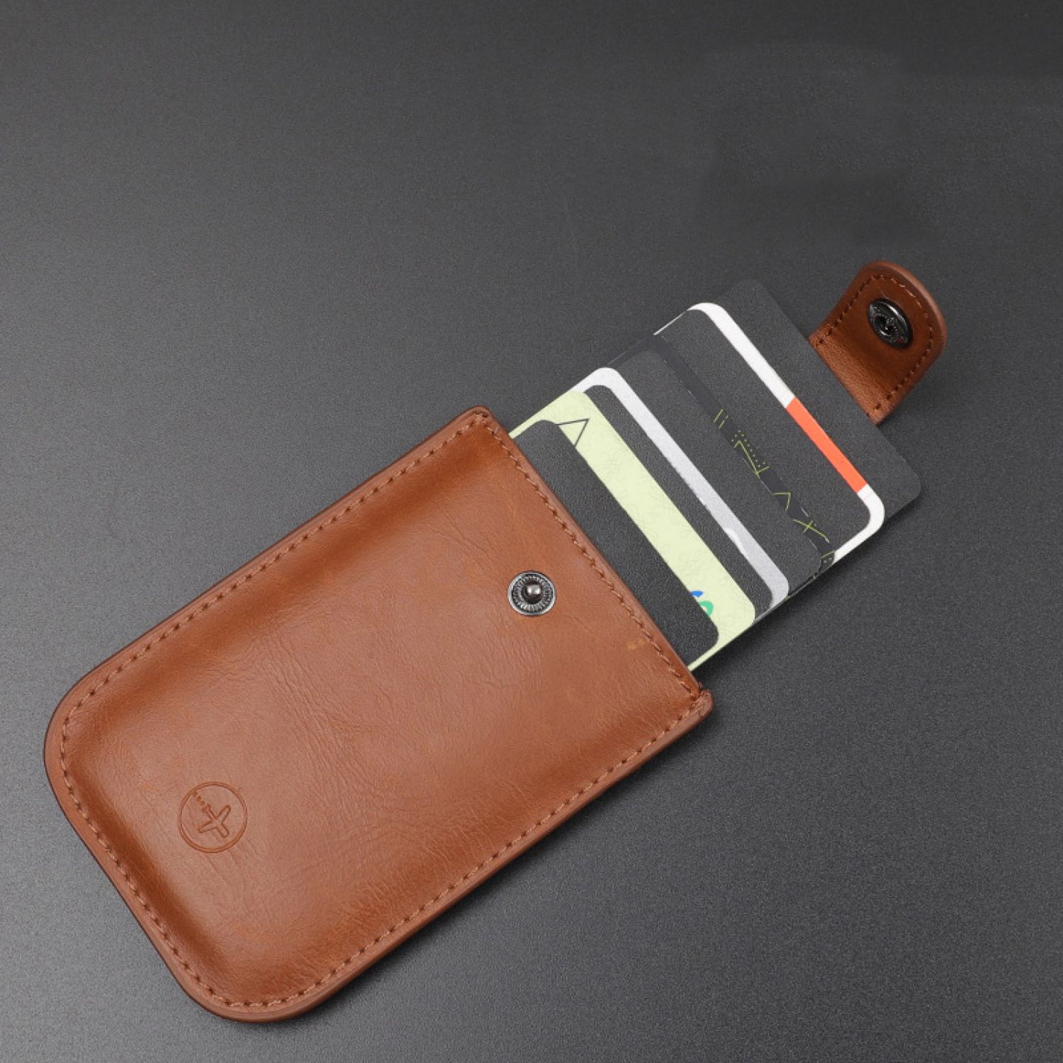 Pull-Out Men'S Leather Pu Multi-Card Slot Credit Card Bank Card Holder Id Card Case Card Holder Brown