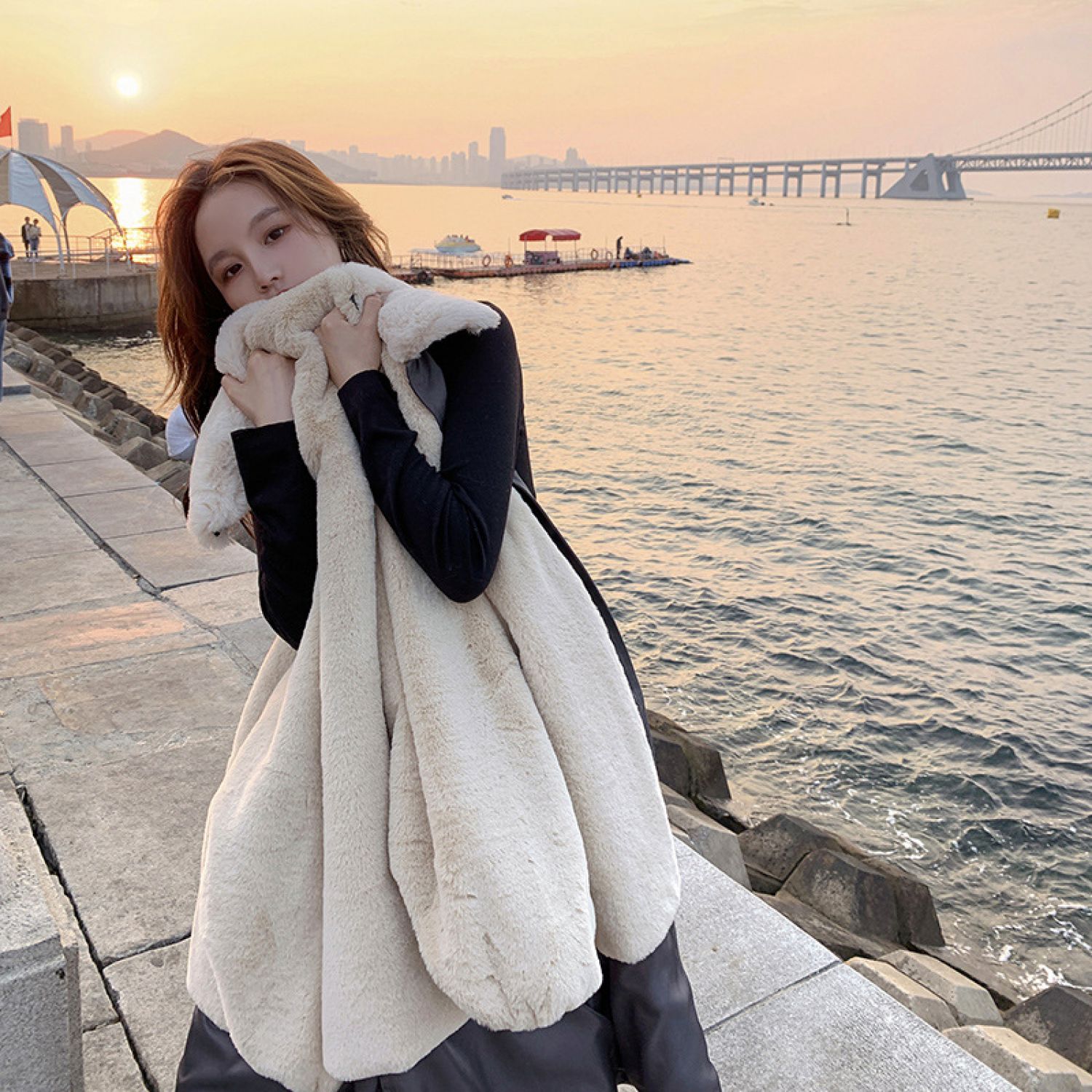 Clothing style details: with fur collar