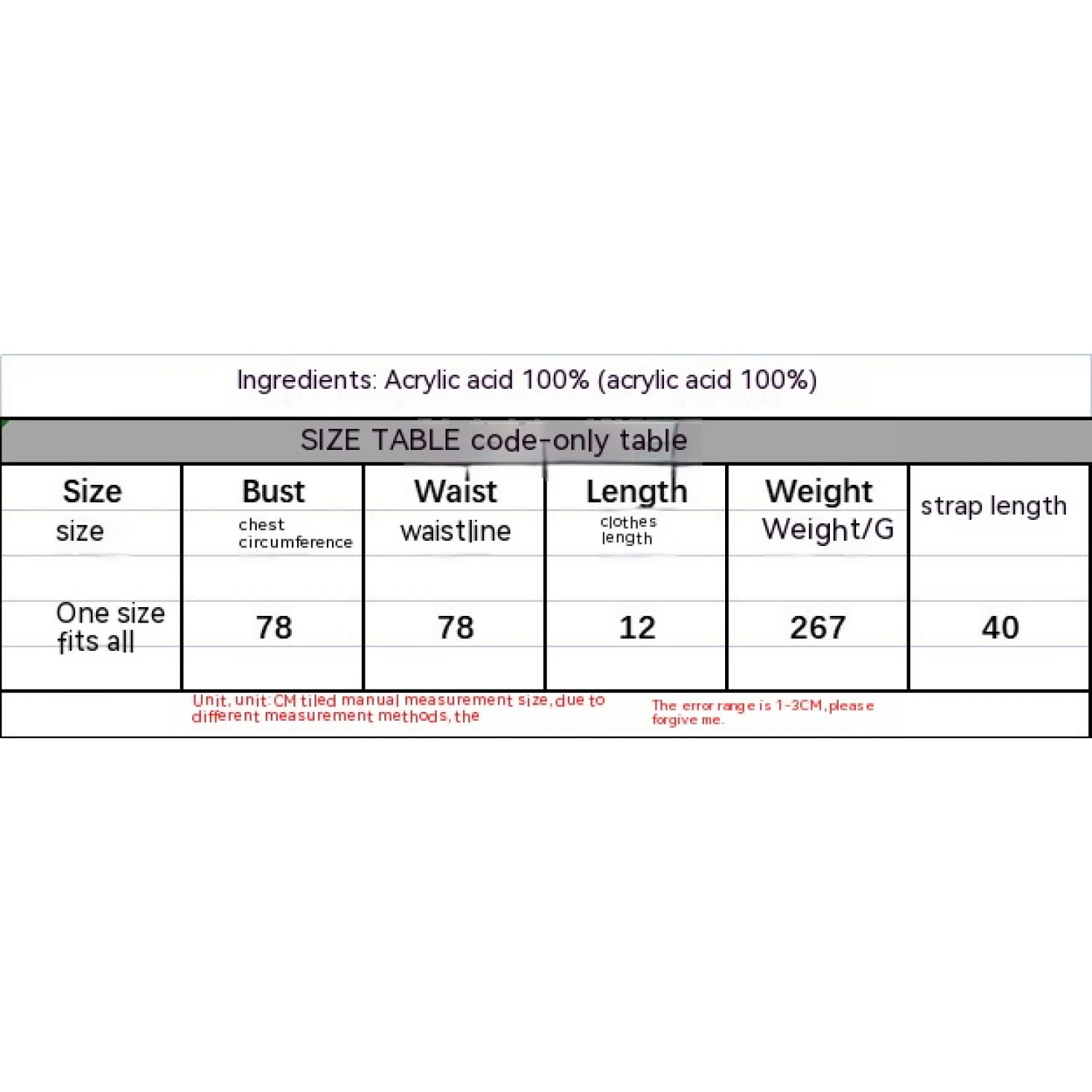 Main fabric composition: acrylic fiber