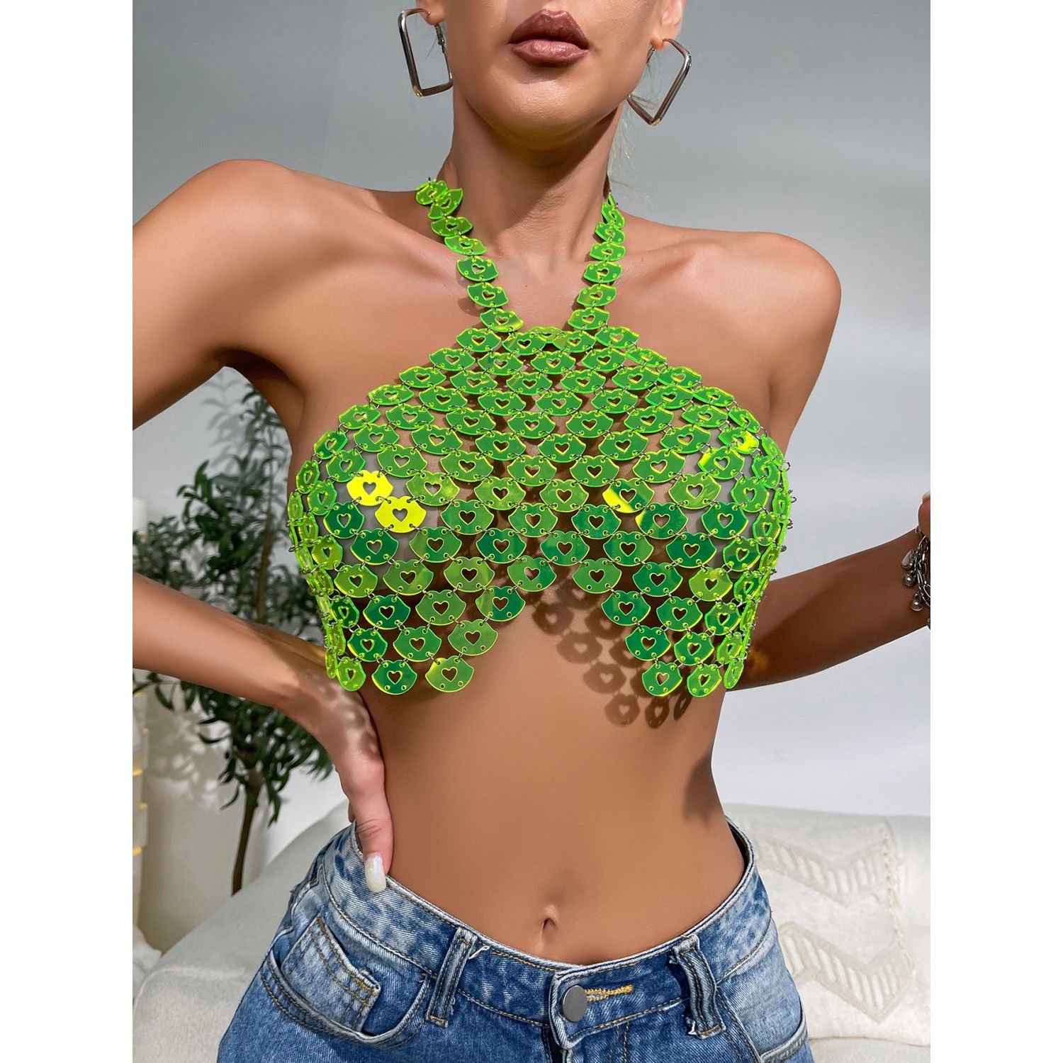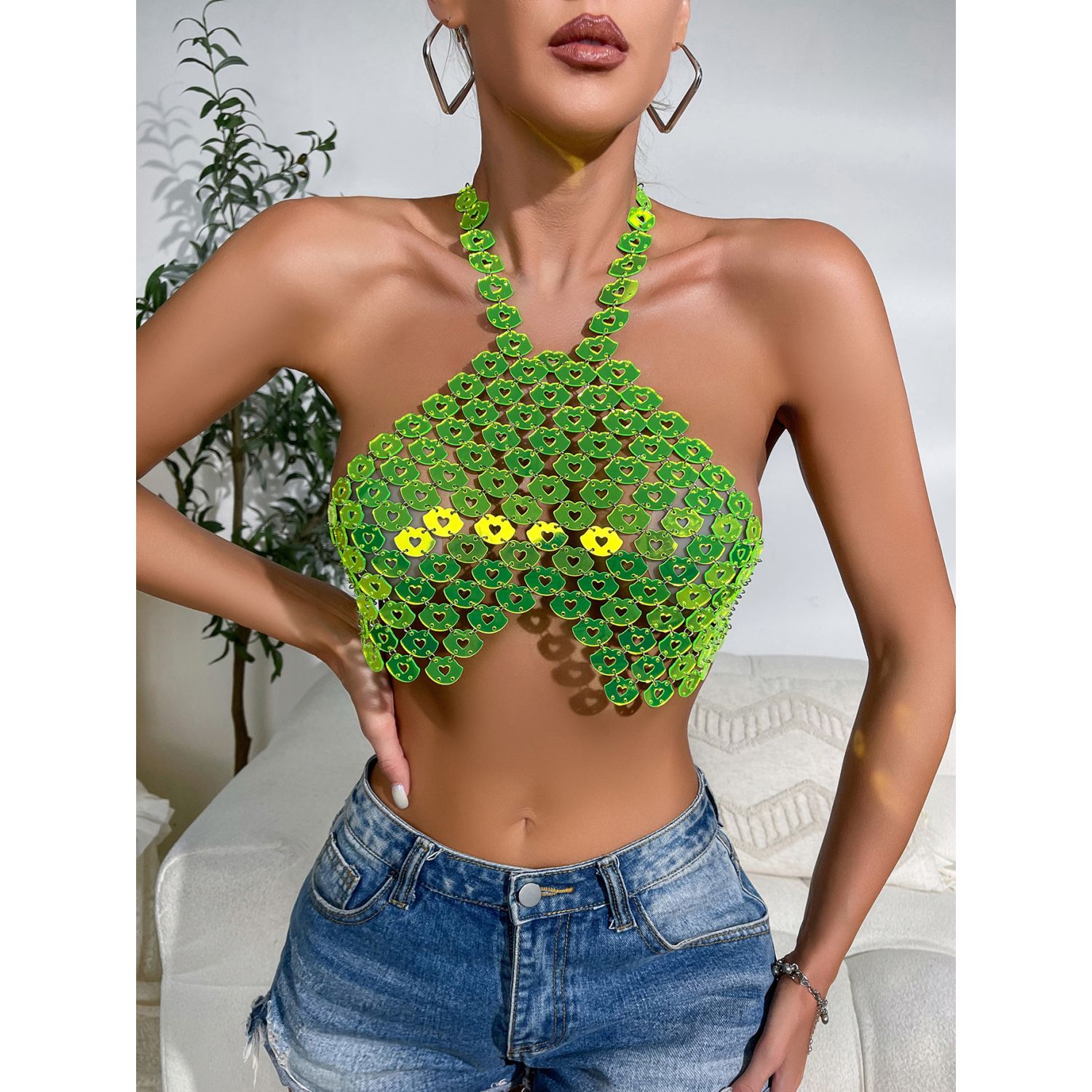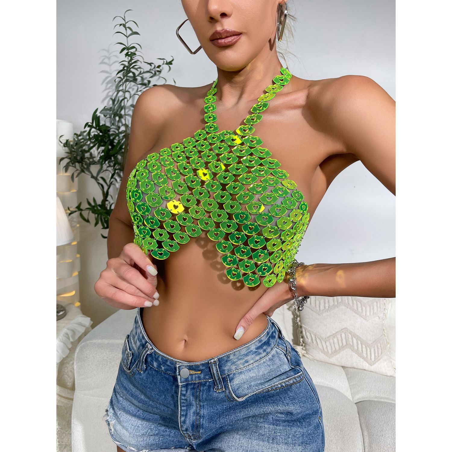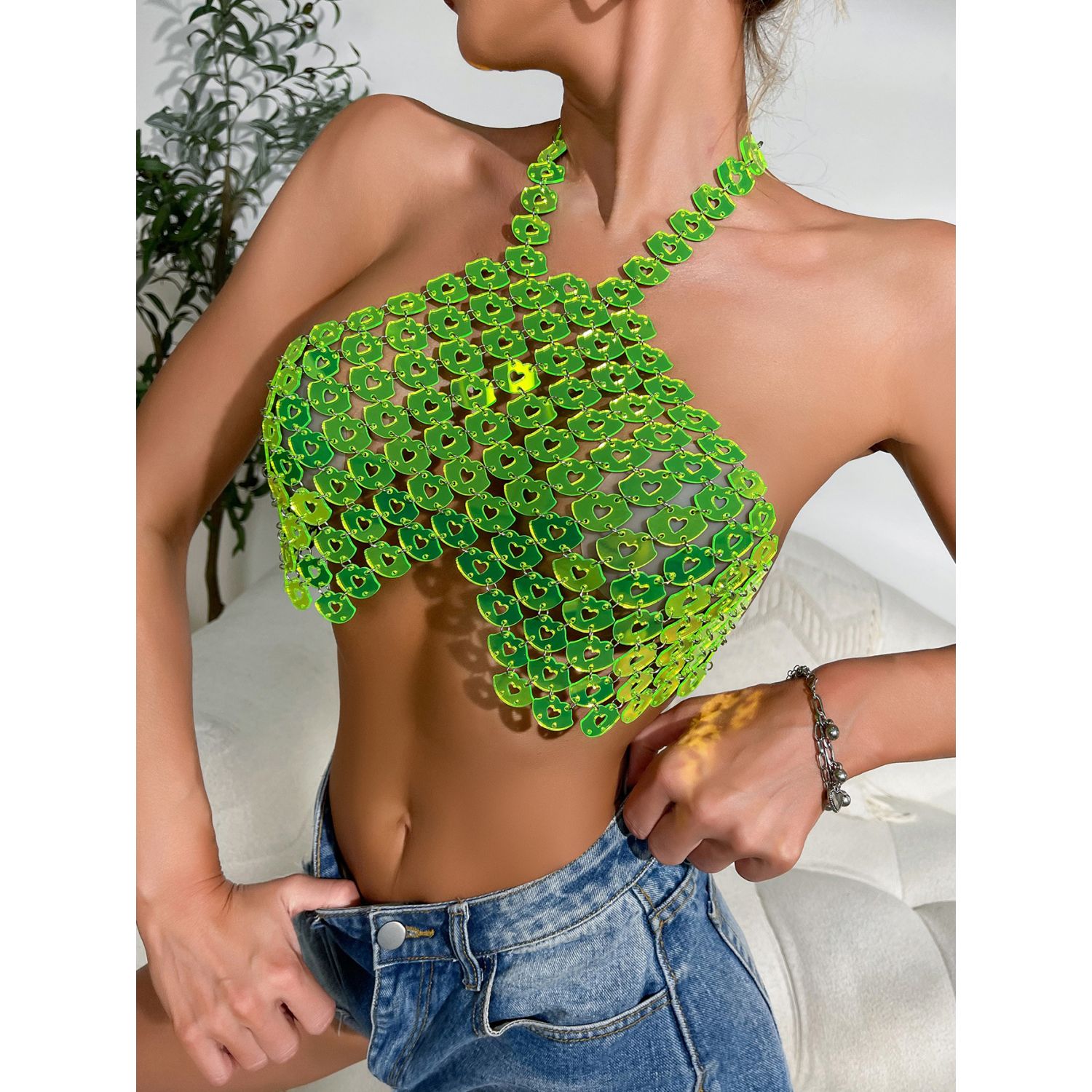 Sexy Backless Halter Love Vest Fluorescent Green Free Size