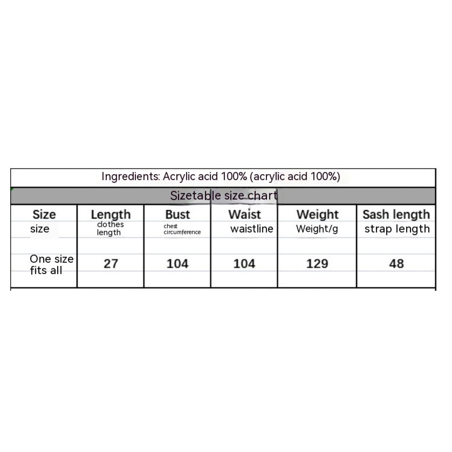 Main fabric composition: acrylic