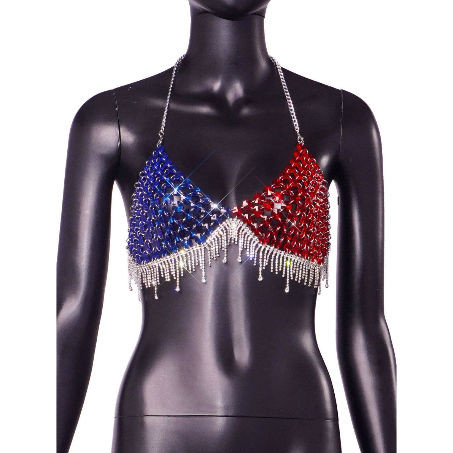 Sexy Gem Red And Blue Color Matching Backless Halter Camisole Women Red And Blue Free Size