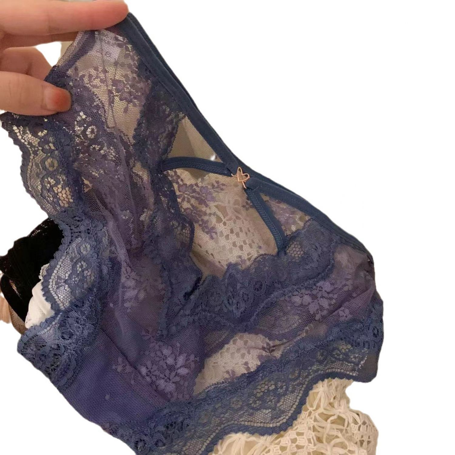 Sexy Lace Underwear Women's Cross Hollow Translucent Seamless Cotton Crotch Breathable Black Average Size