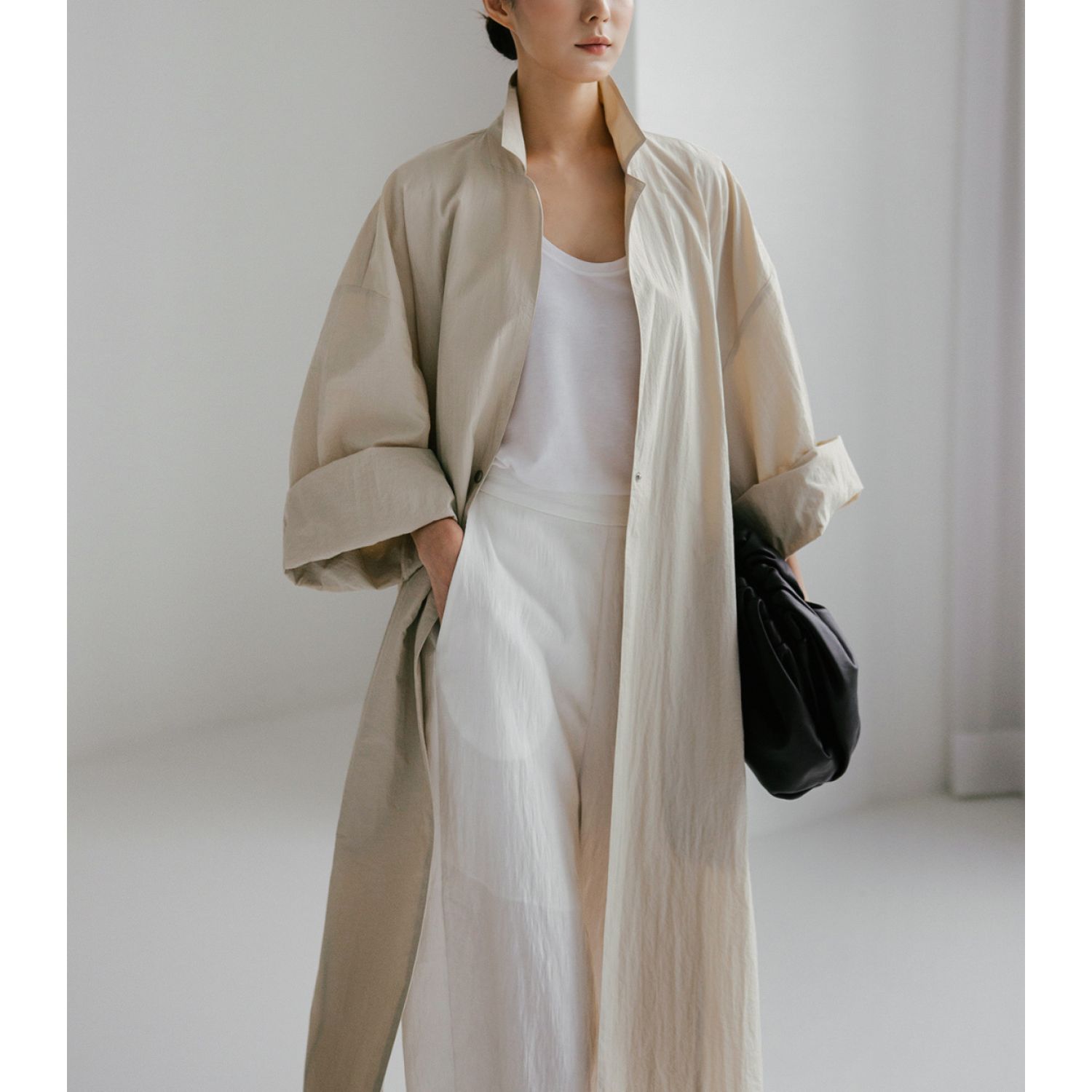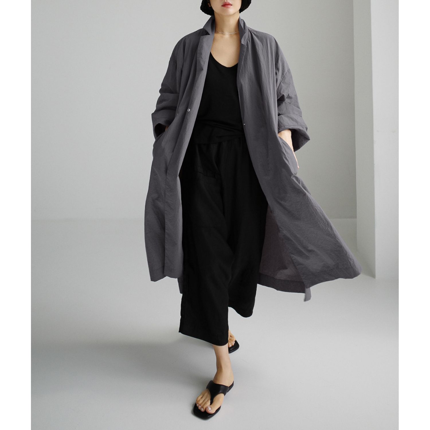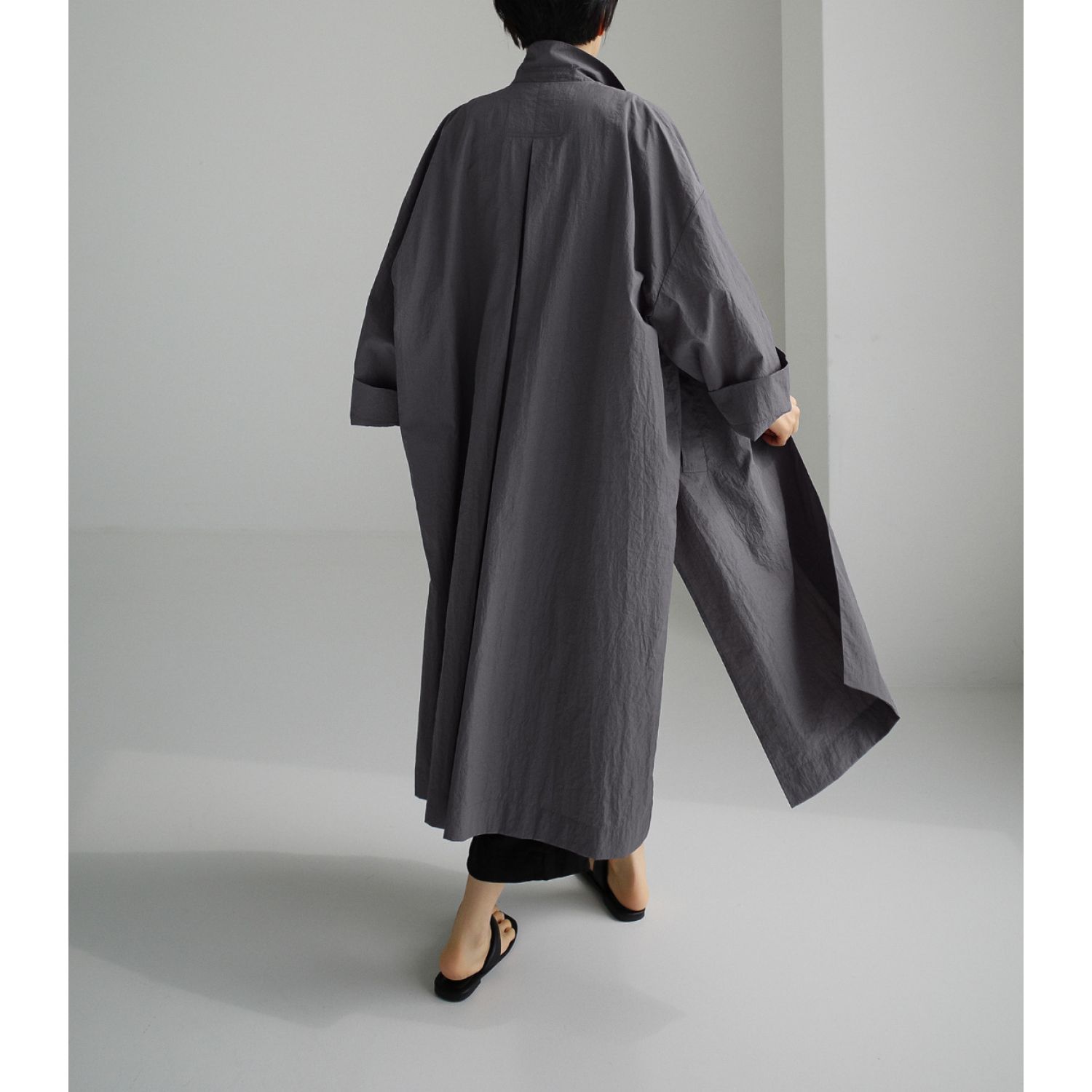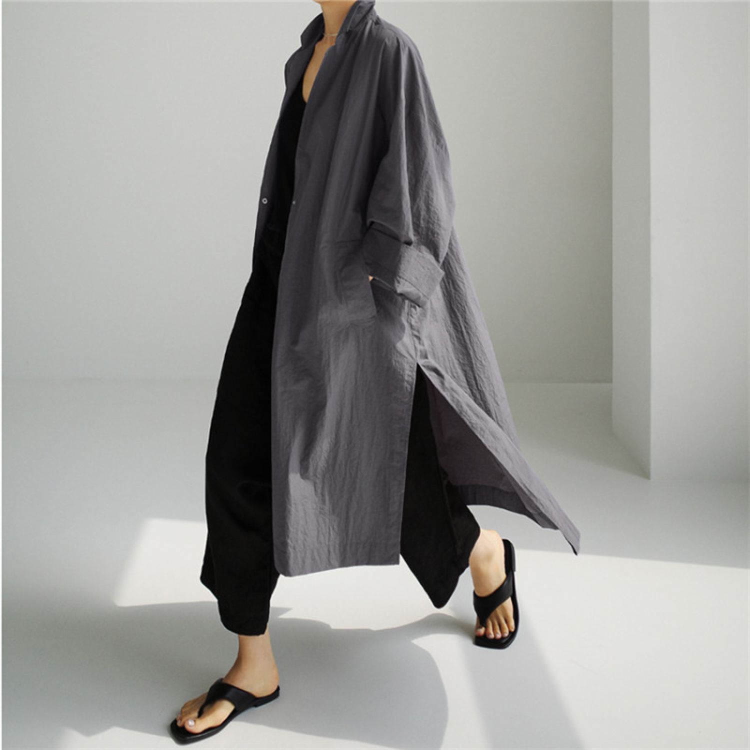 Shirt Dress Overknee Long Split Bf Cotton Linen Trench Coat Smoky Gray S