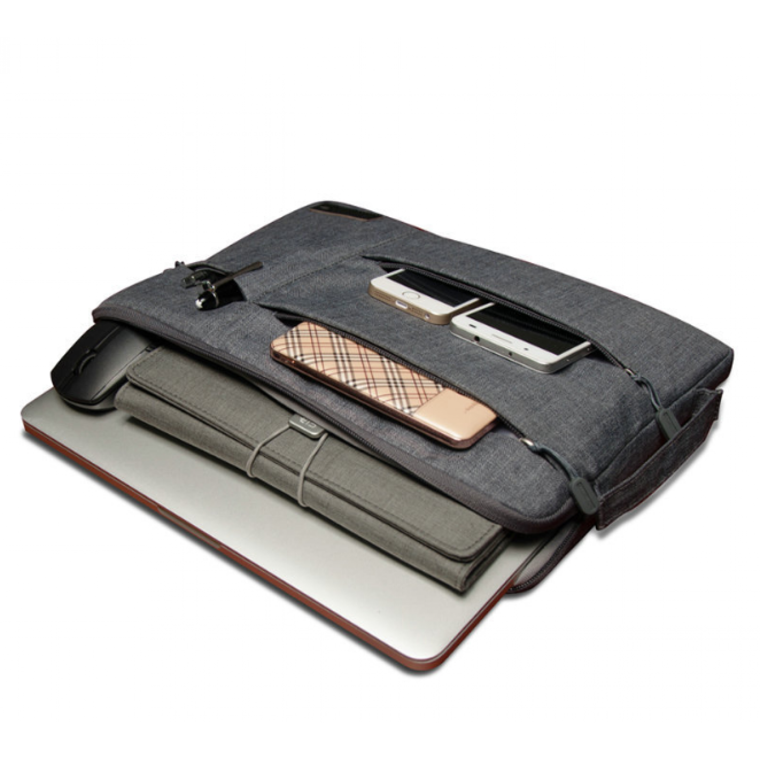 Package internal structure: ID bag, mobile phone bag, laminated zipper bag, zipper pocket, computer pocket