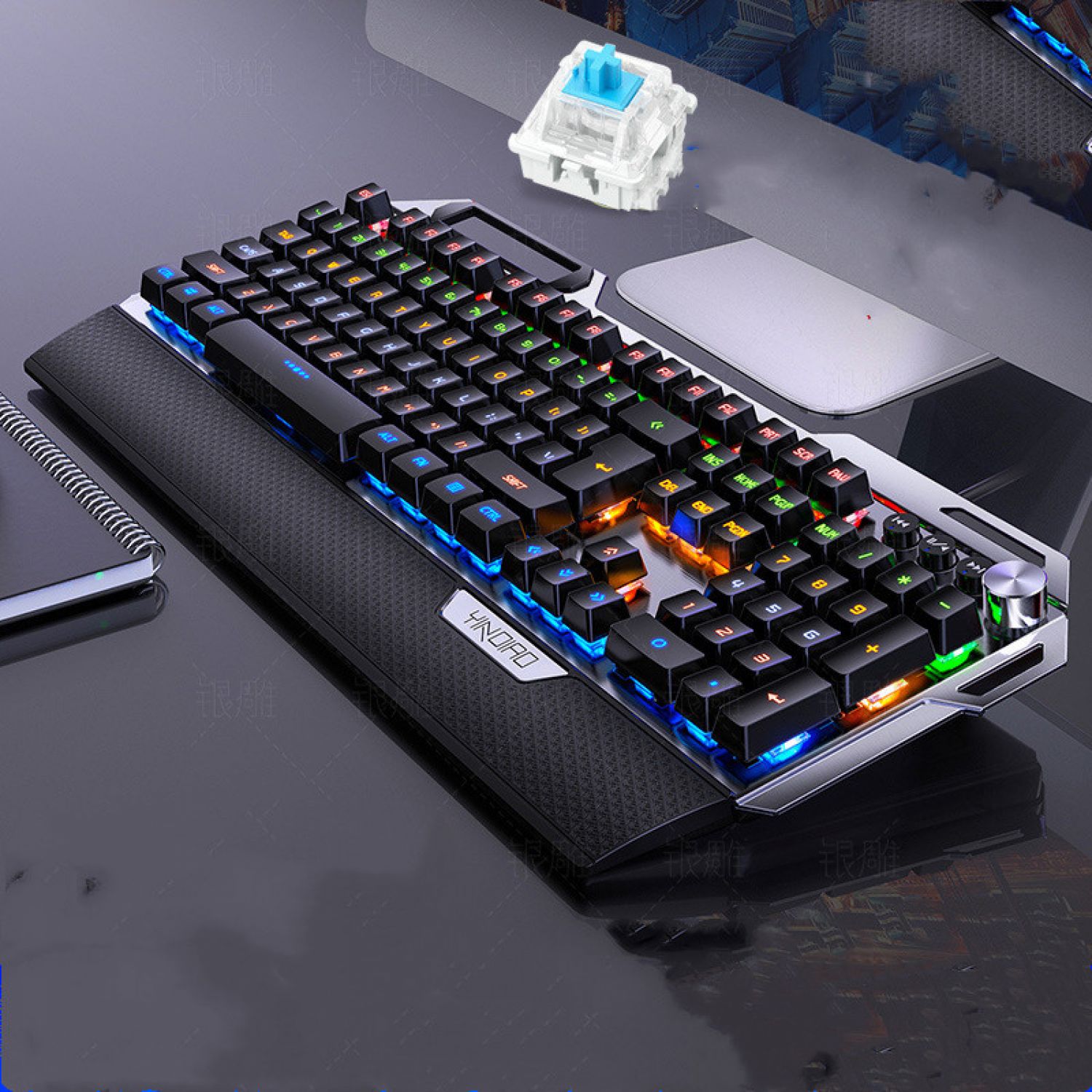 Silver Carving K100 Metal Real Mechanical Keyboard Luminous Game Black Axis Wired USB Black Black shaft