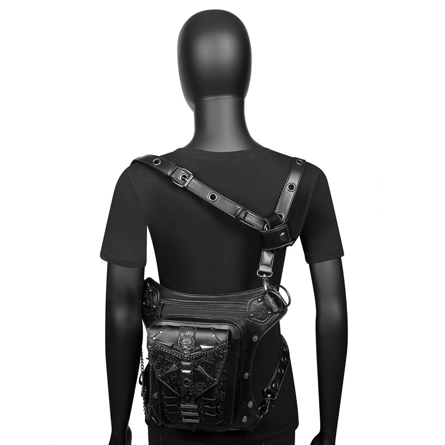 Skull Chain Bag Outdoor Motorcycle Belt Bag Black