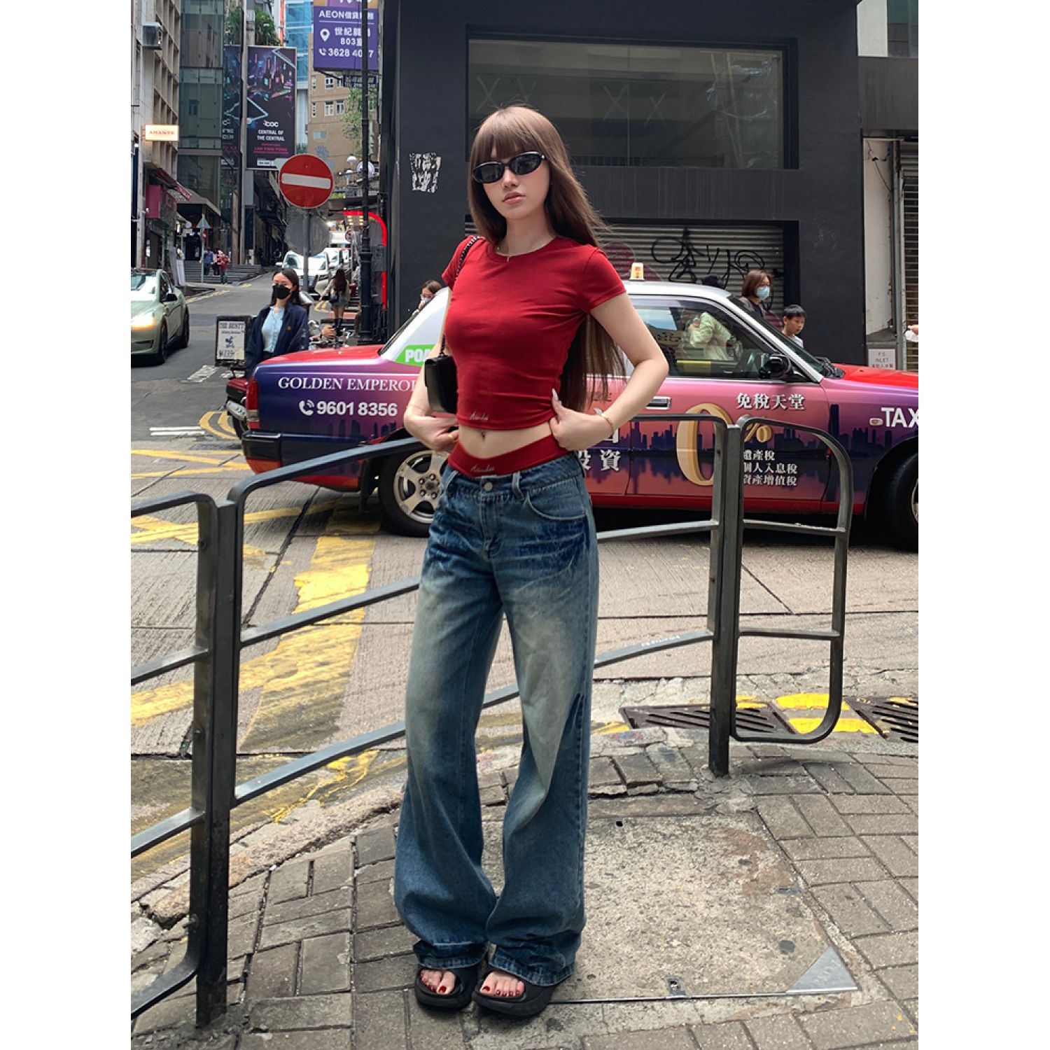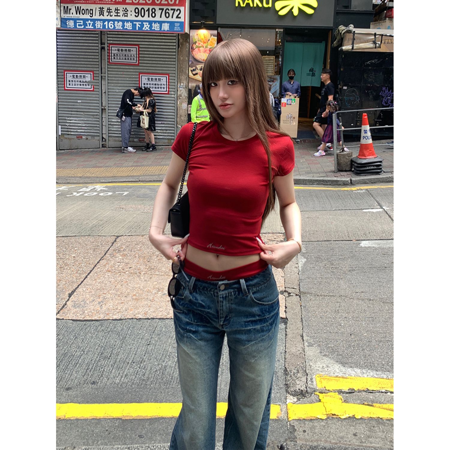 Main color: red short sleeve, red shorts