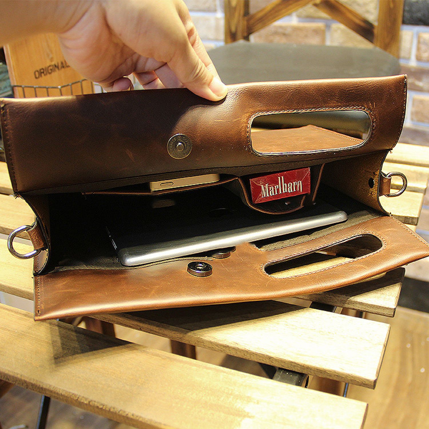 Soft side horizontal square shoulder bag Brown