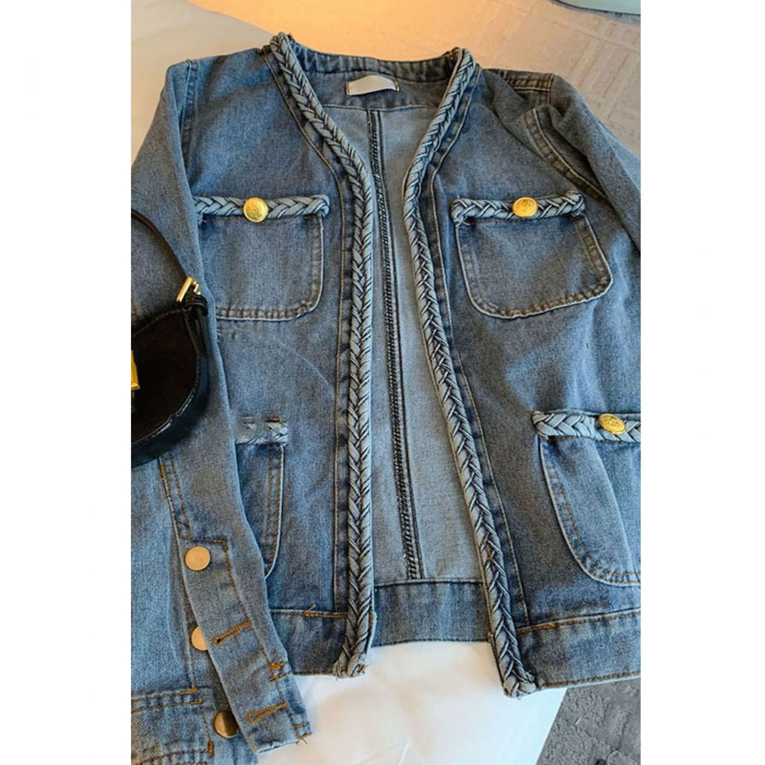 Spring And Autumn Weastern Style And Chanel's Style Long Sleeve Cardigan Retro Loose Short Denim Blue S