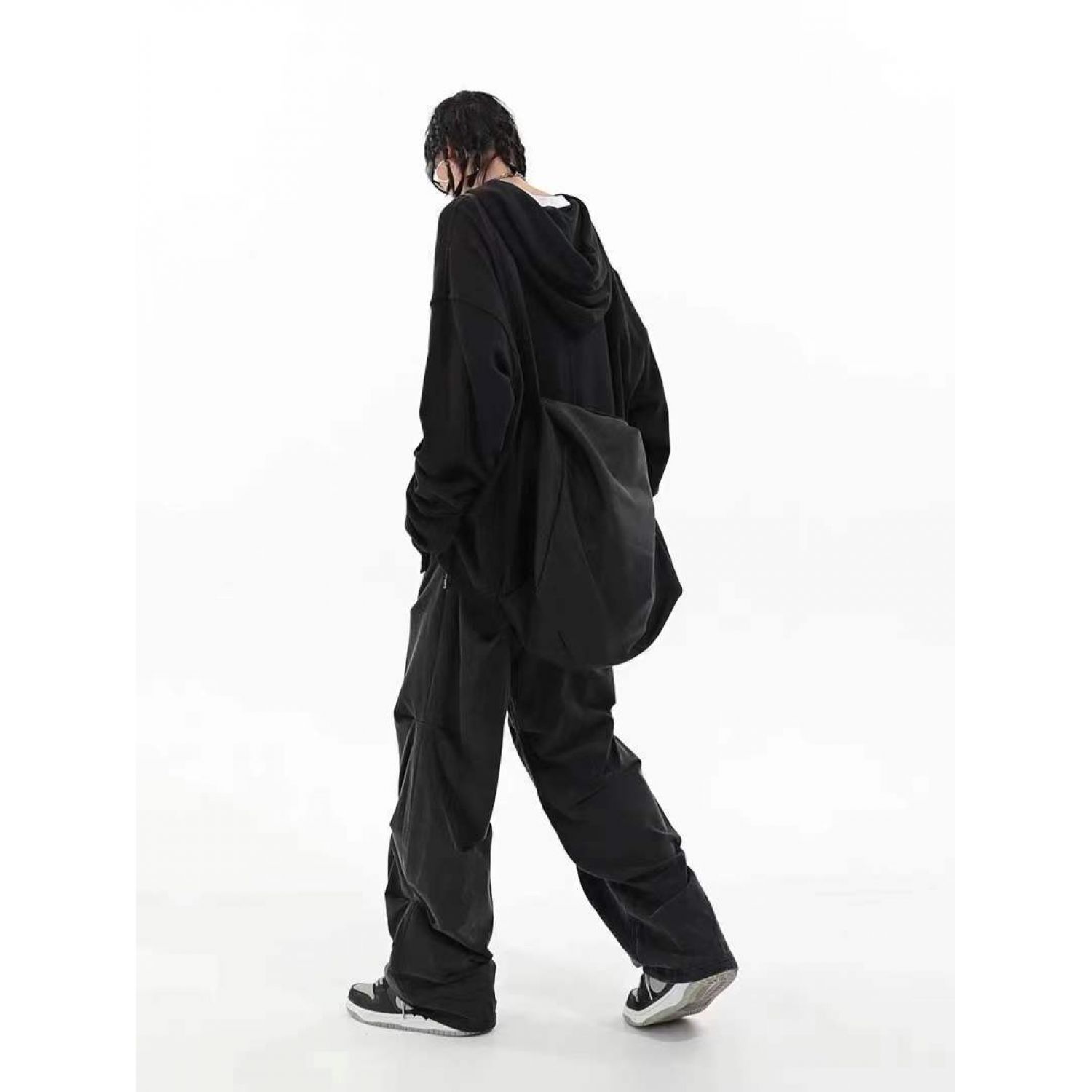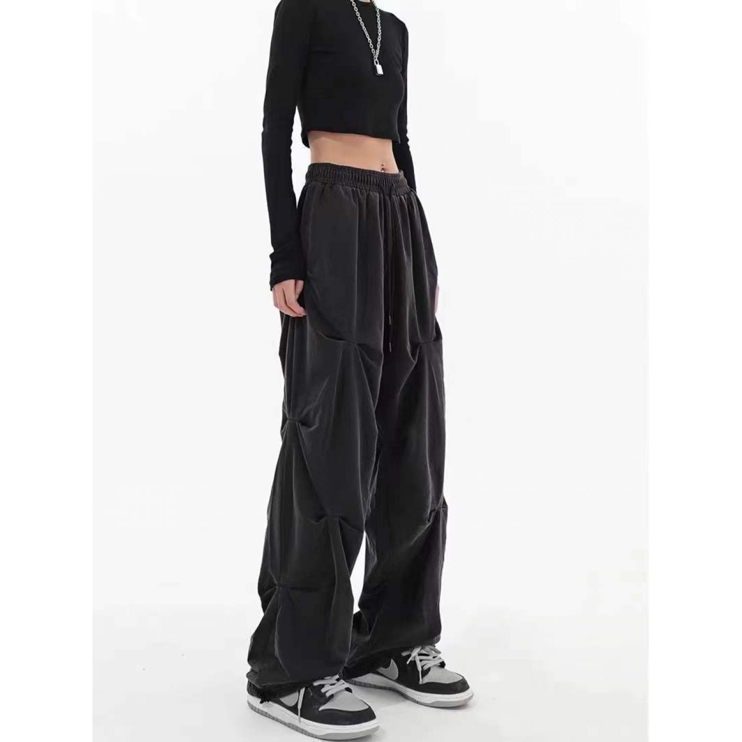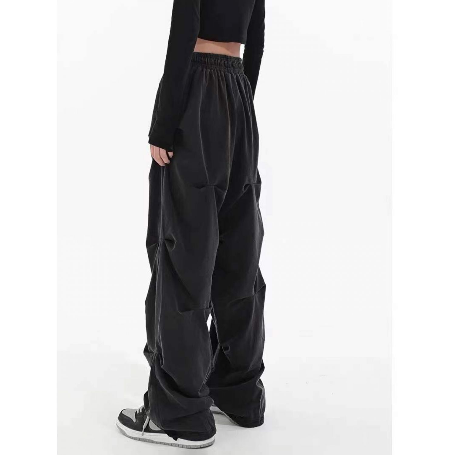 Spring And Summer Pleated Casual Drawstring Straight-leg Wide-leg Pants Black M