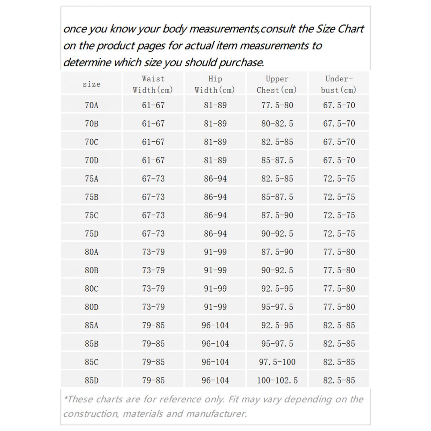 1. Asian sizes are 1 to 2 sizes smaller than European and American people. Choose the larger size if your size between two sizes. Please allow 2-3cm differences due to manual measurement. 2. Please check the size chart carefully before you buy the item, if you don't know how to choose size, please contact our customer service. 3.As you know, the different computers display colors differently, the color of the actual item may vary slightly from the following images.
