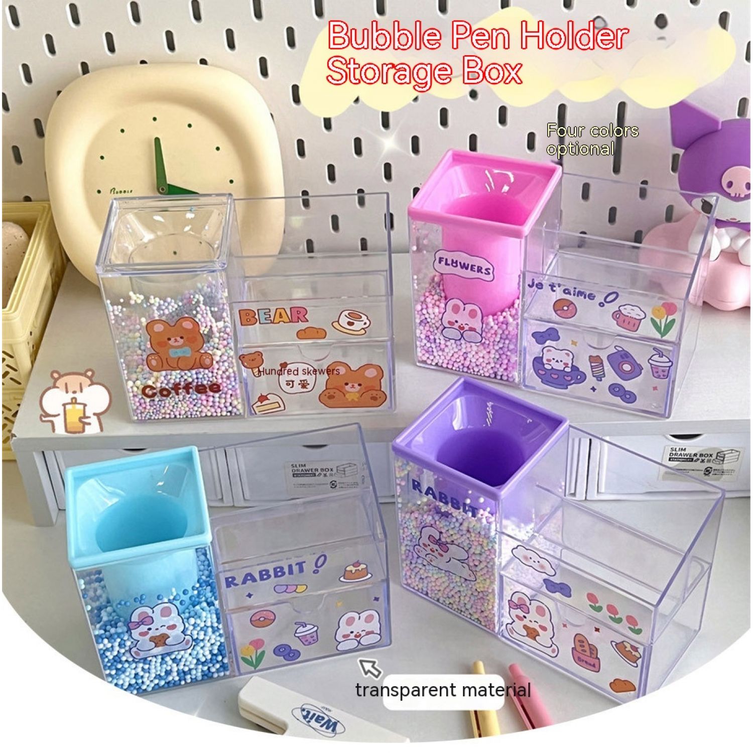Specifications: 1# blue storage box, 2# pink storage box, 3# transparent storage box, 4# purple storage box, 5# blue storage box [free stickers]], 6# pink storage box [free stickers] 7# transparent color storage box storage box [free stickers] 8# purple storage box [free stickers]]