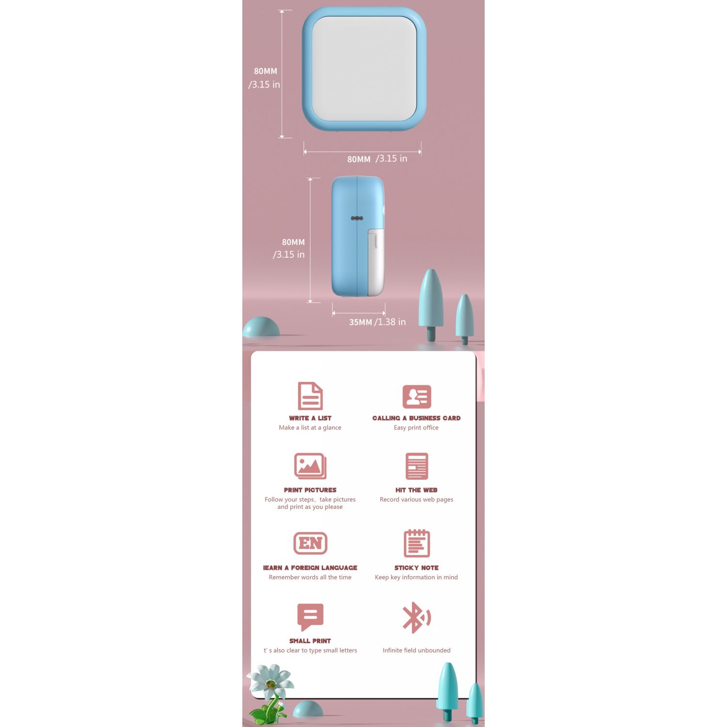 Student Mini Thermal Label Printer Pink Standard