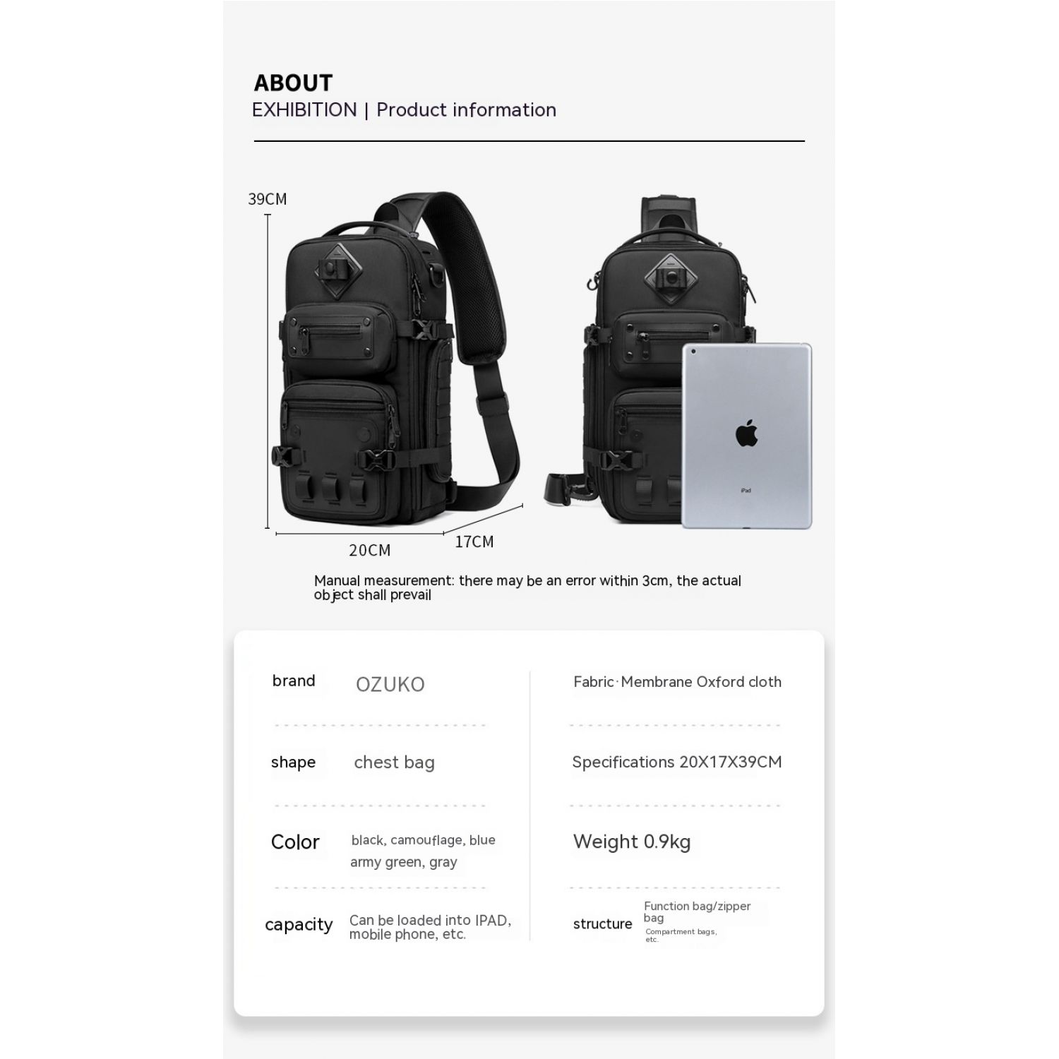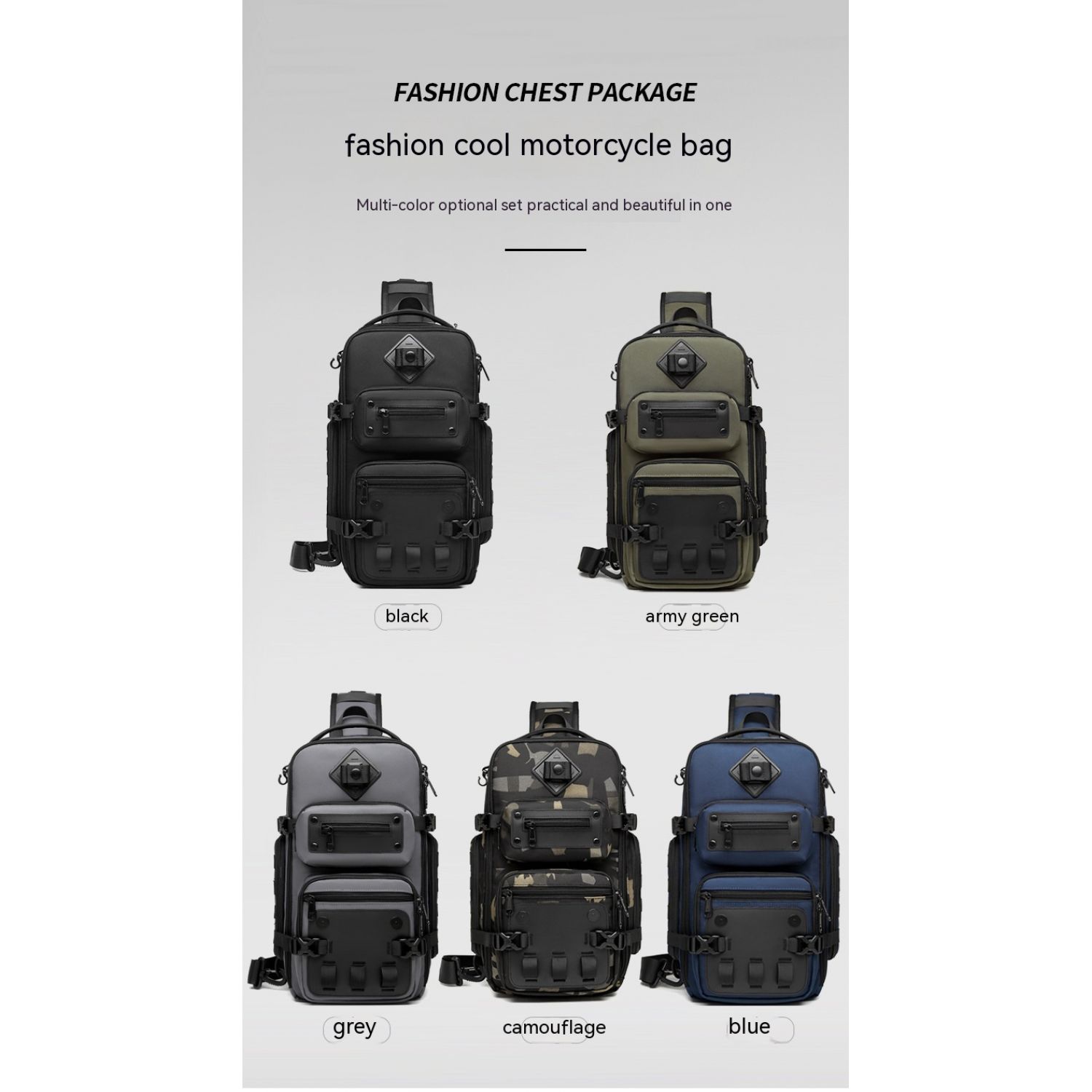 Color: black, dark gray, royal blue, Army color, camouflage