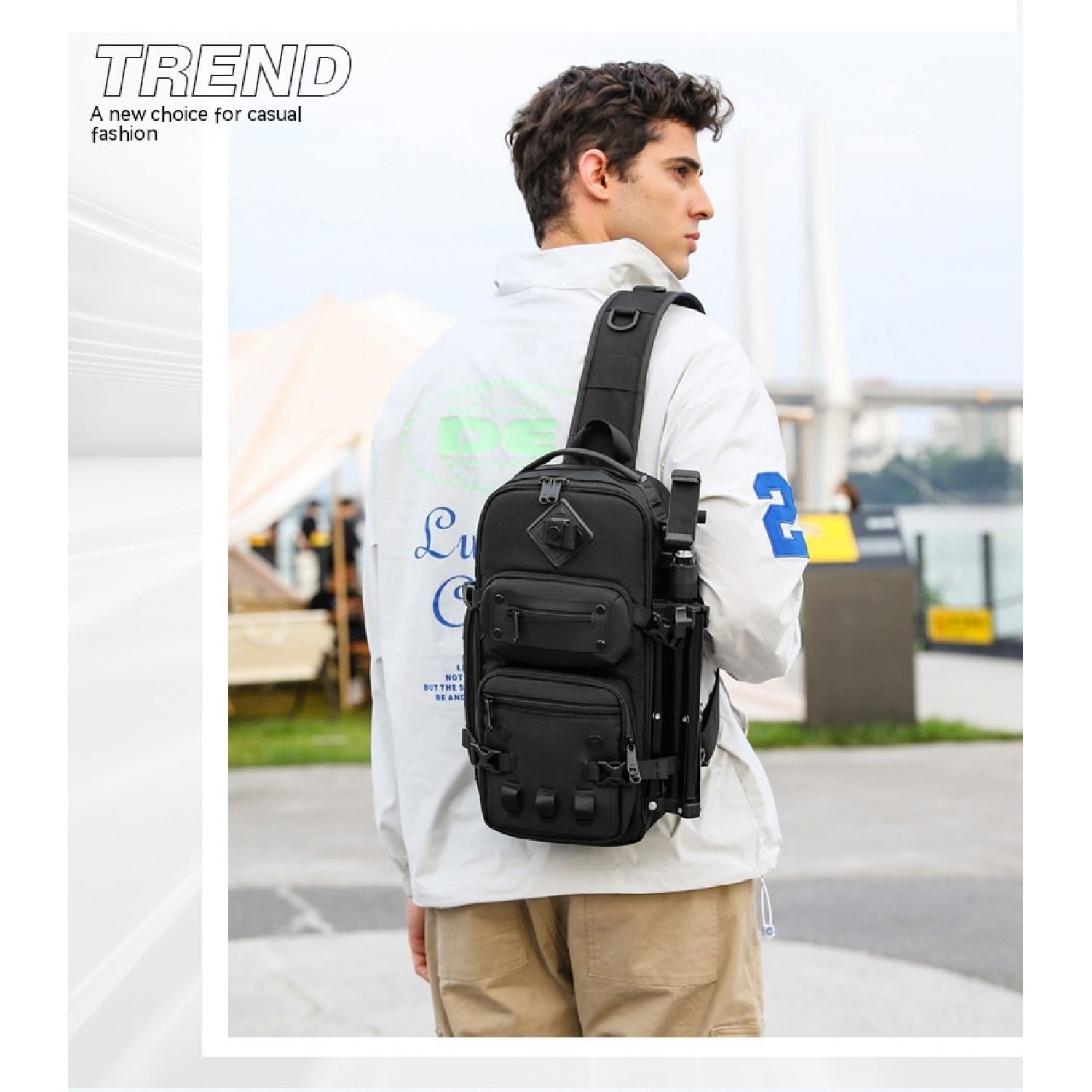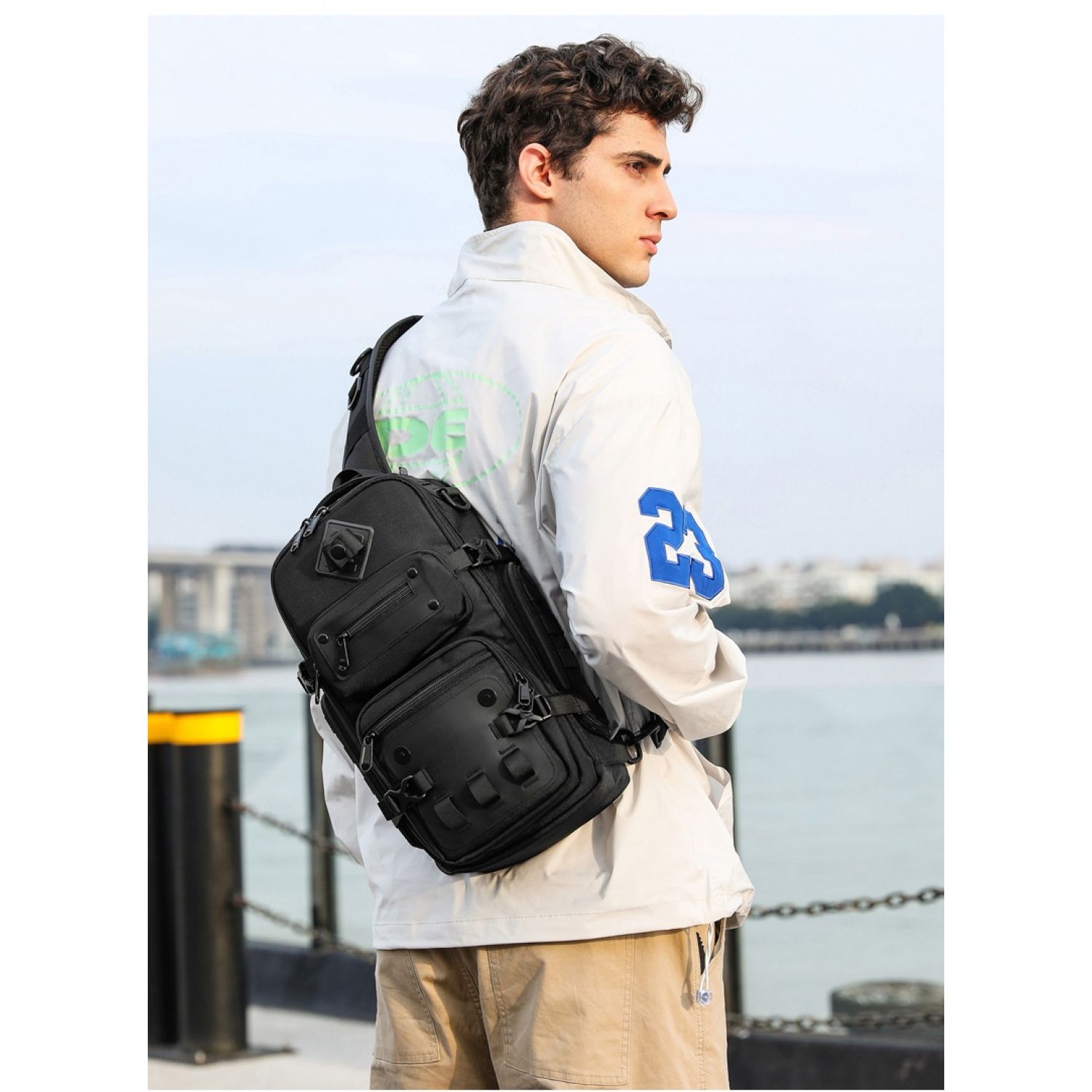 Tactical Chest Outdoor Large Capacity Sports Messenger Bag Black