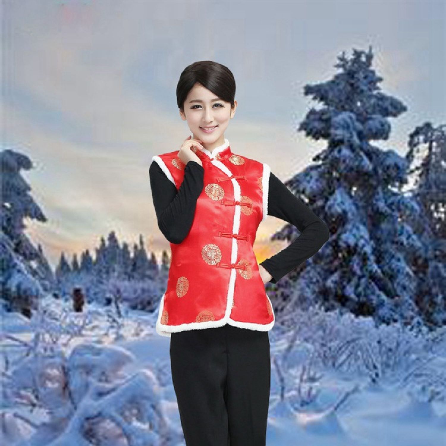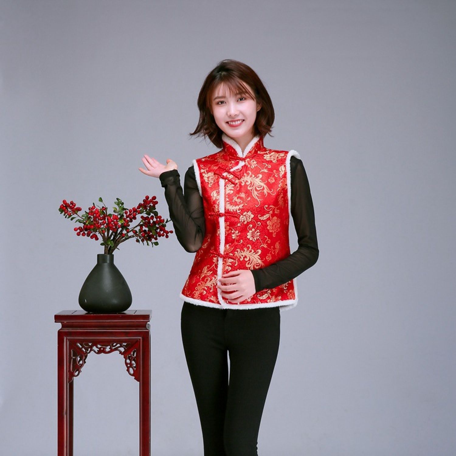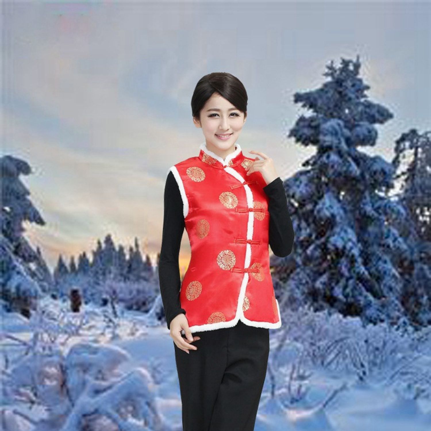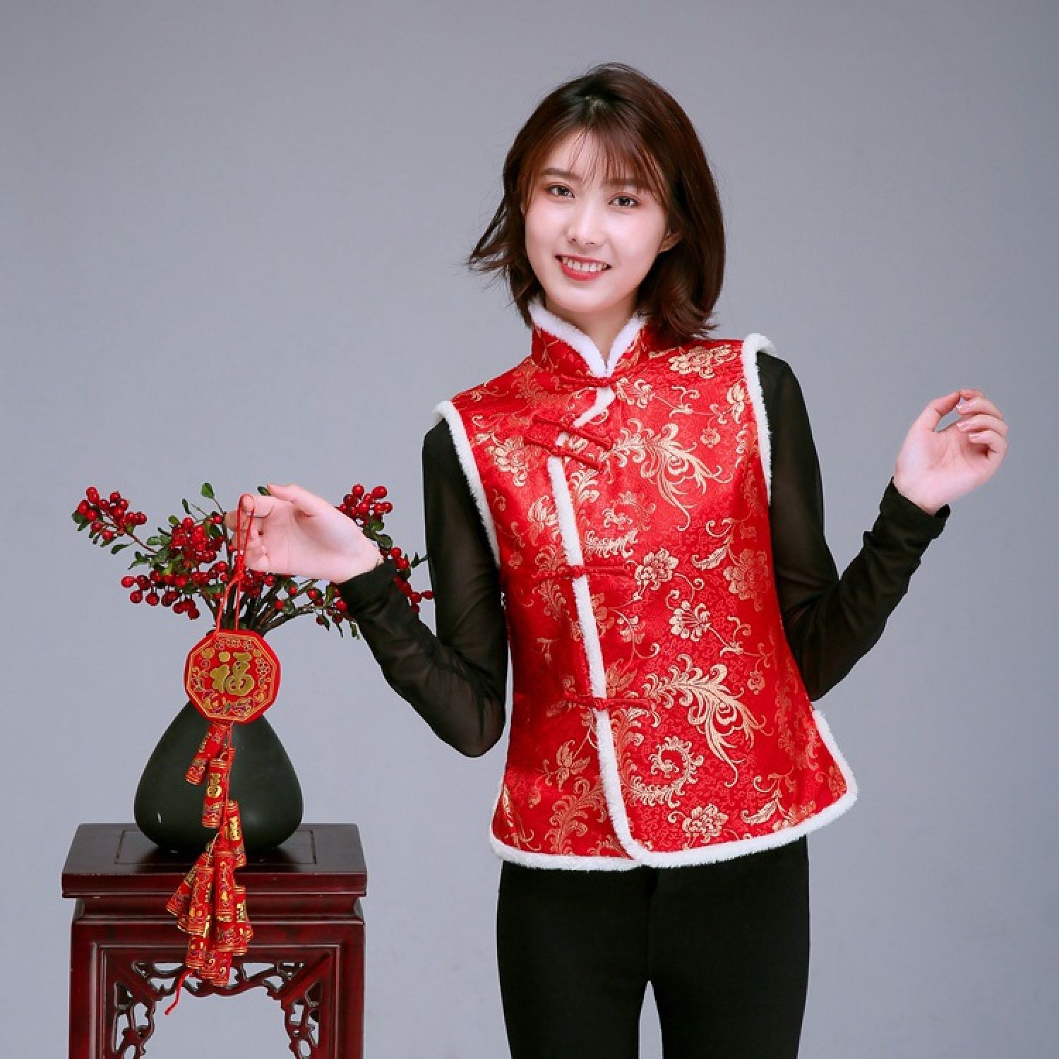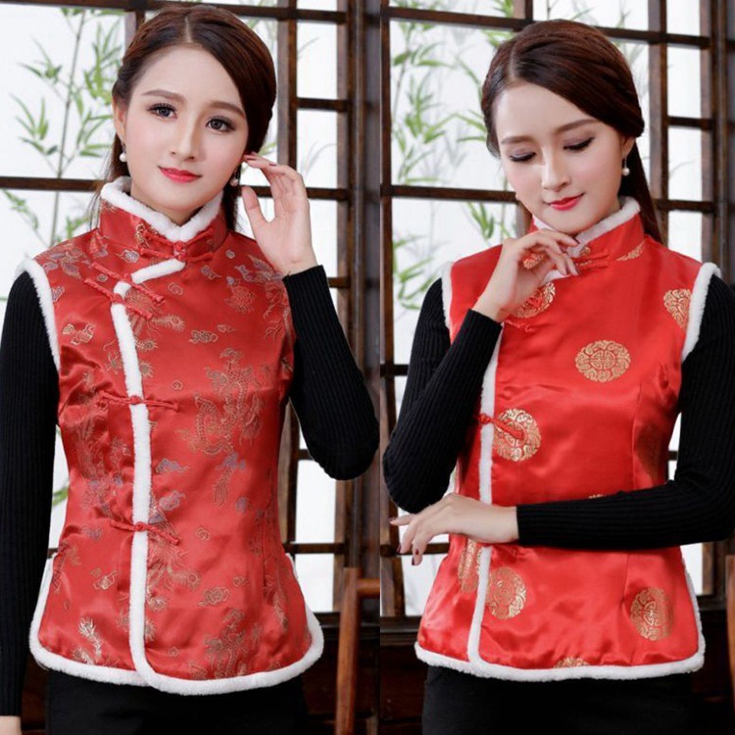 Color: Women's vest gold cake red, women's vest plum blossom red, women's vest Dragon and Phoenix Red, women's vest Phoenix Tail Red, women's vest plum pink, women's vest plum black red, women's vest Plum Blossom Dark Blue