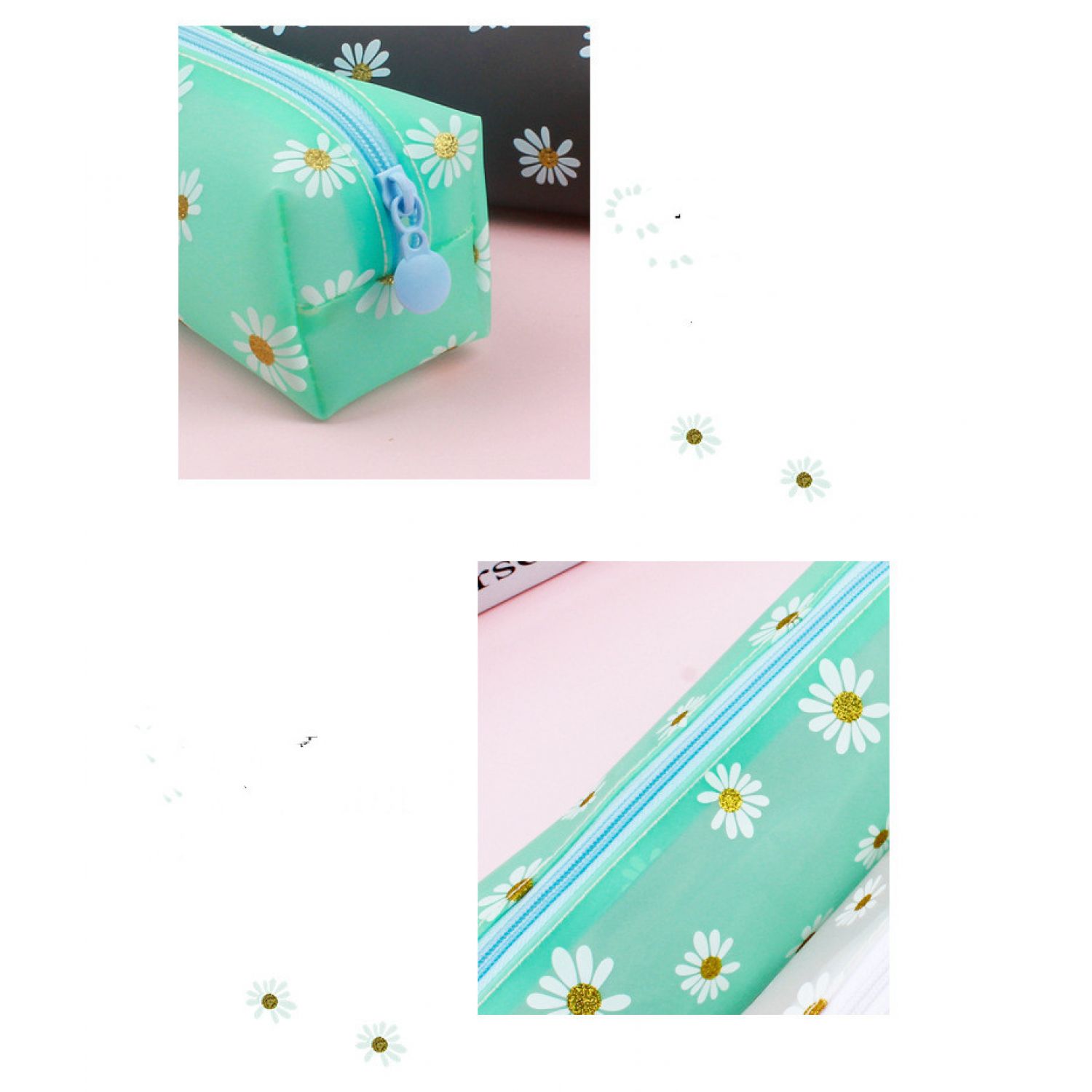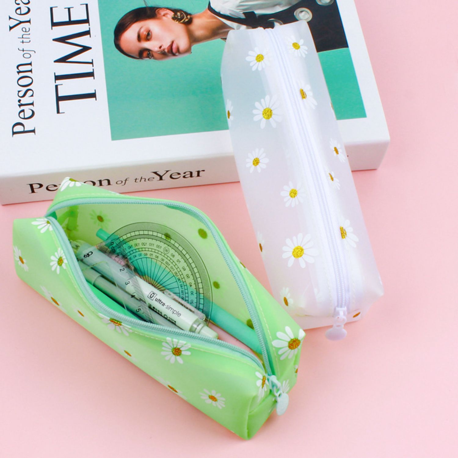 Transparent Tpv Girl Cosmetics Daisy Storage Bag Student Pencil Case White