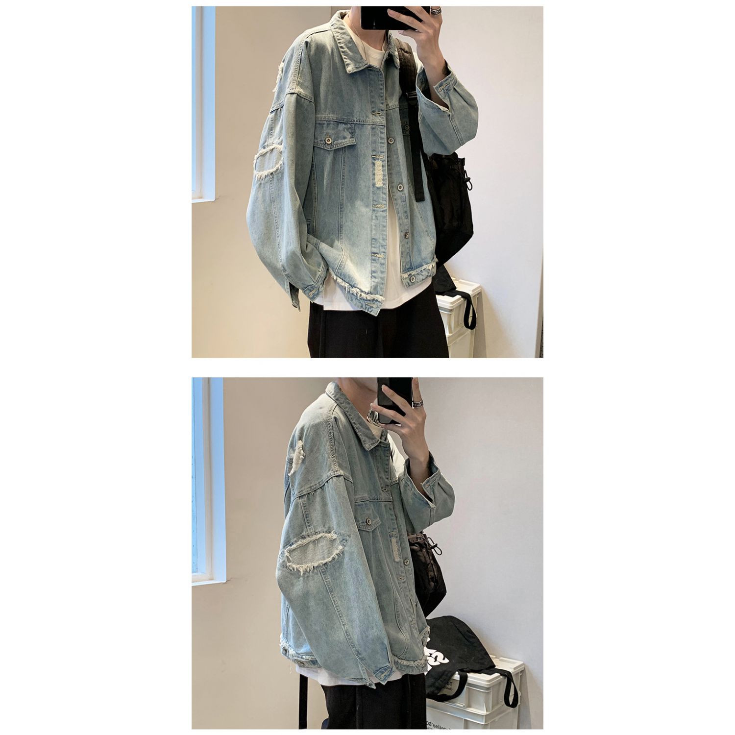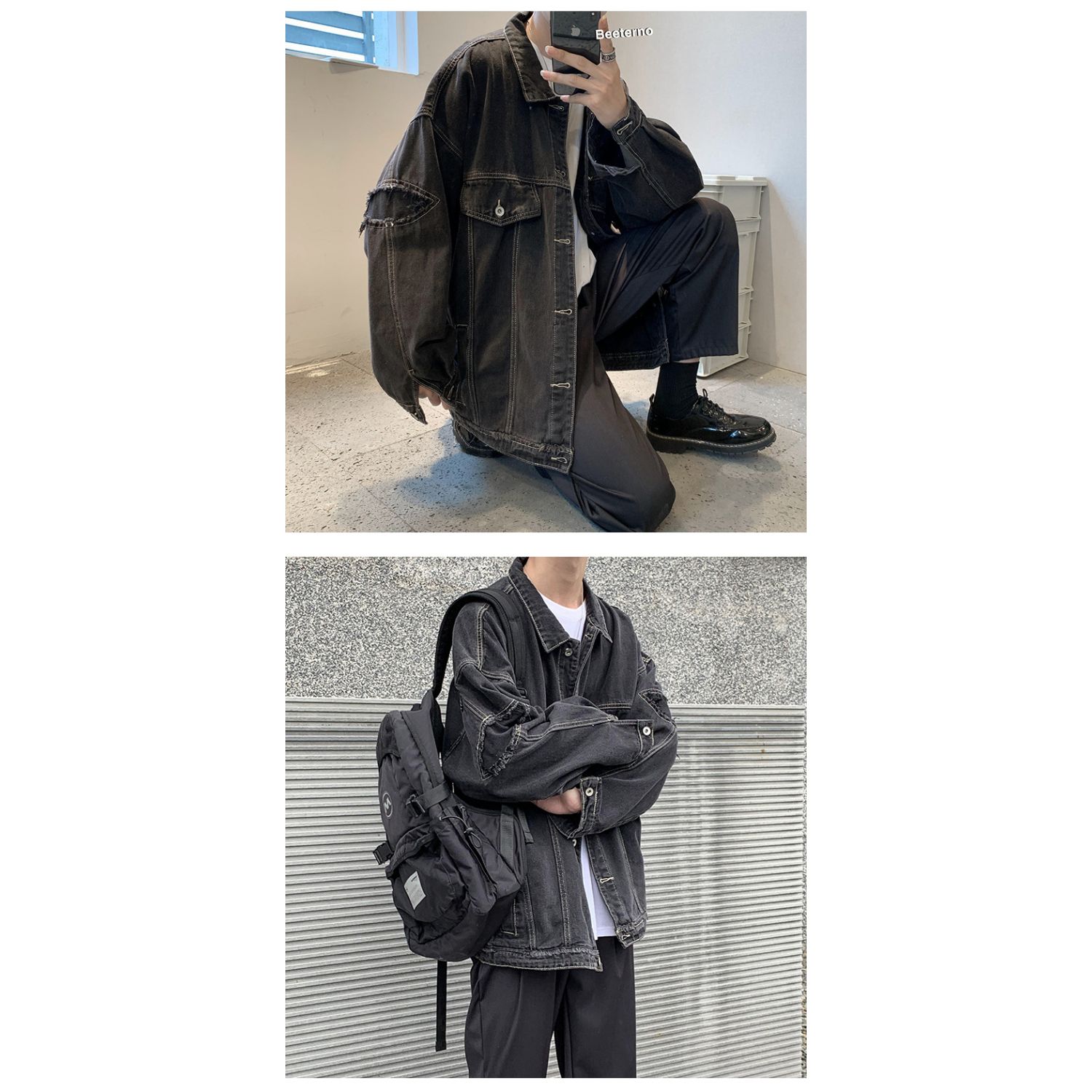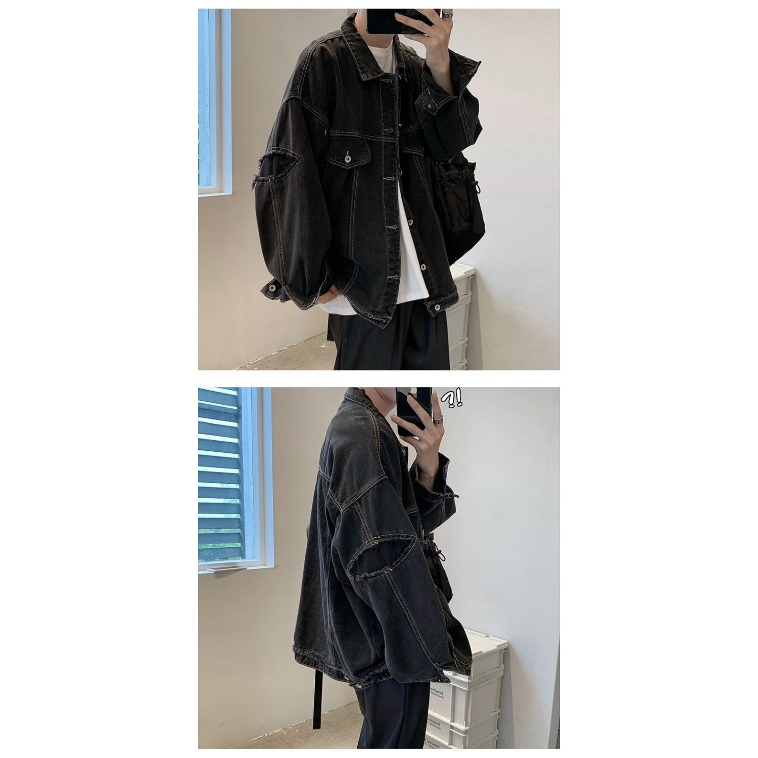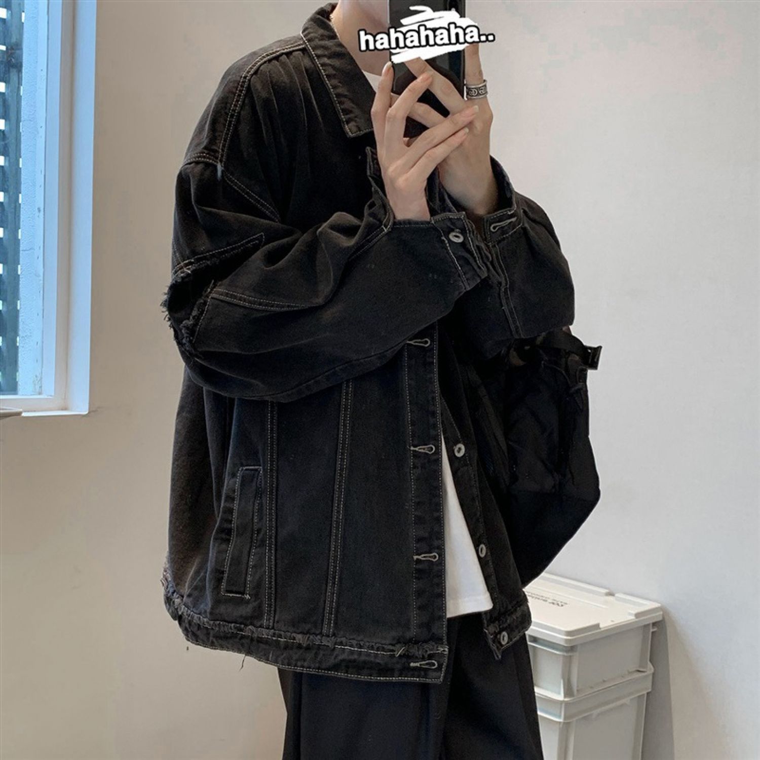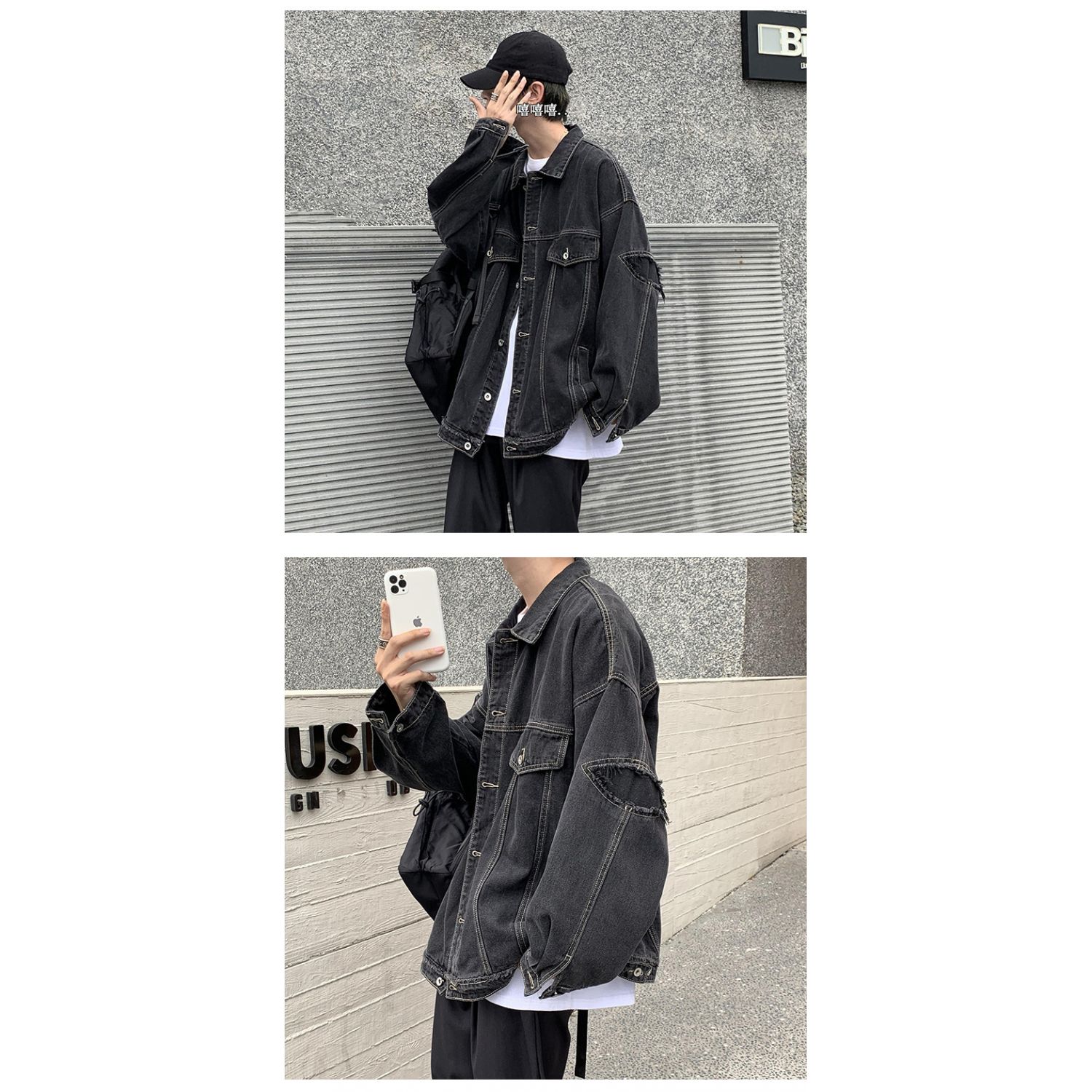 Trendy Hong Kong Style Chic Workwear Denim Jacket Spring Casual Black S