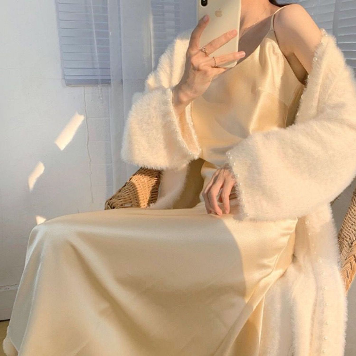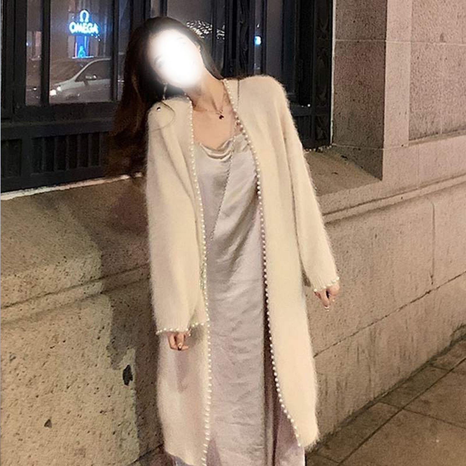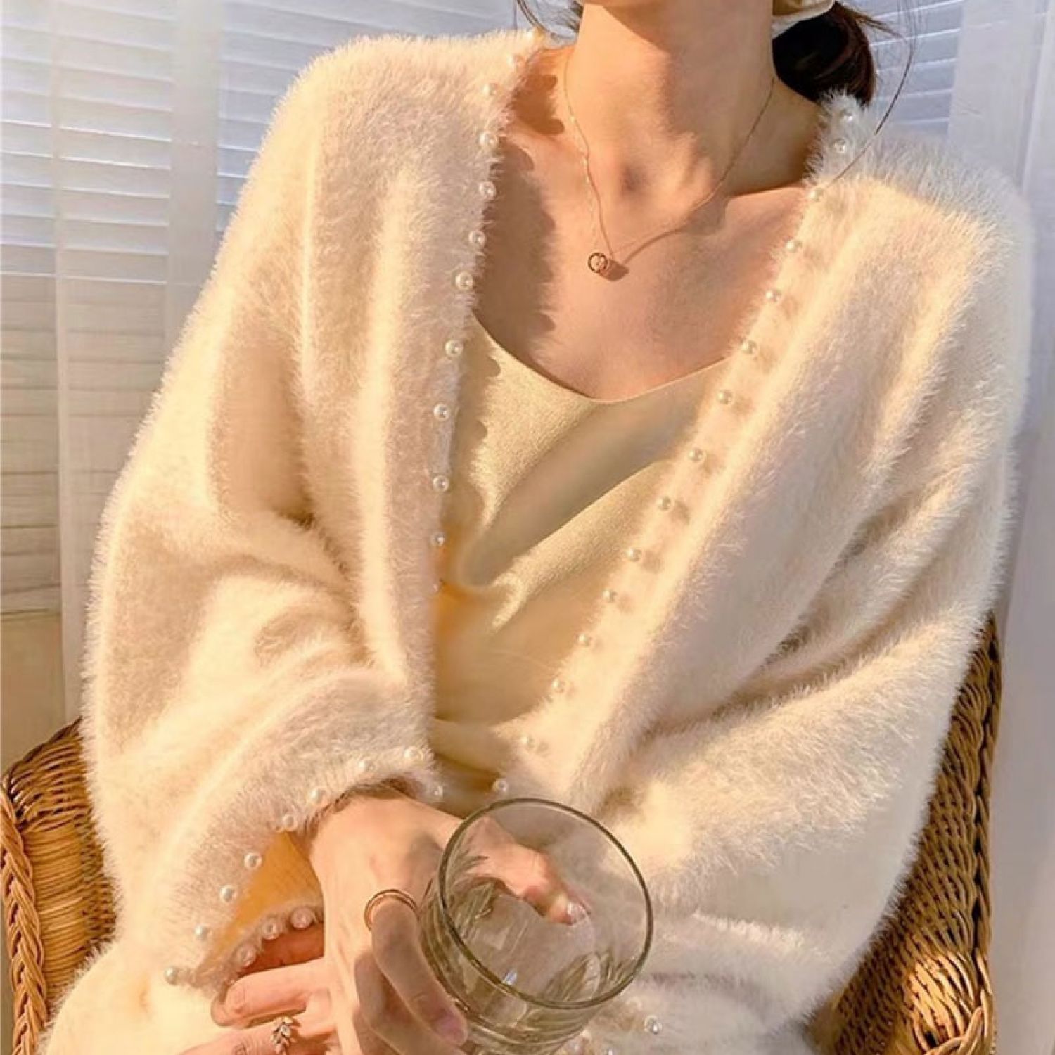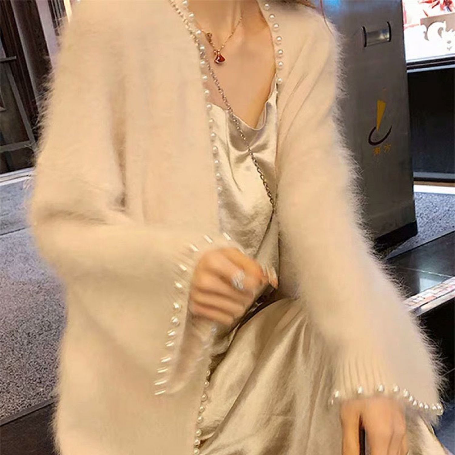 Warm Heavy Industry Nail Pearl Mink Cardigan Mid-length Jacket Beige One size