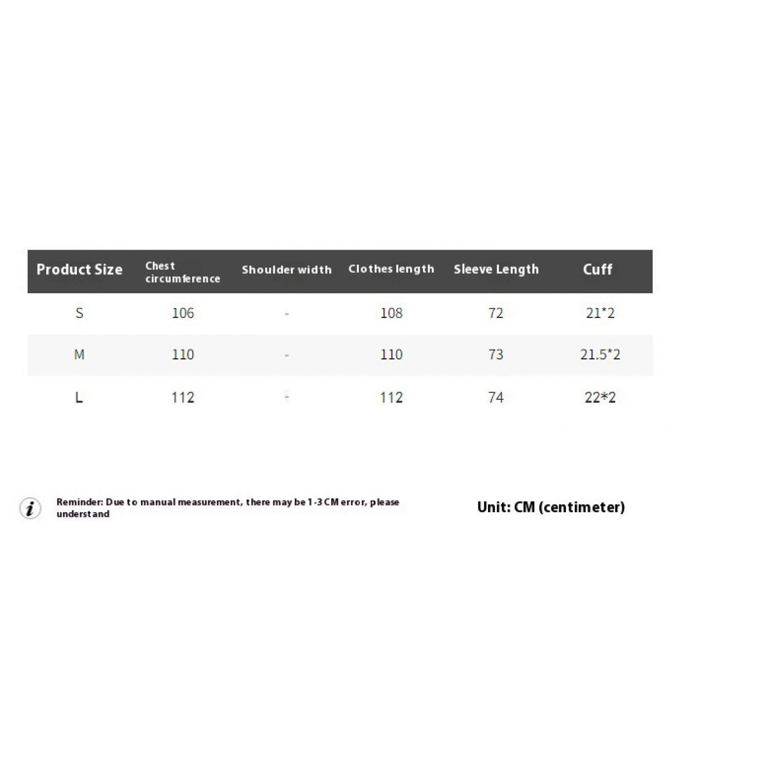 1. Asian sizes are 1 to 2 sizes smaller than European and American people. Choose the larger size if your size between two sizes. Please allow 2-3cm differences due to manual measurement. 2. Please check the size chart carefully before you buy the item, if you don't know how to choose size, please contact our customer service. 3.As you know, the different computers display colors differently, the color of the actual item may vary slightly from the following images.