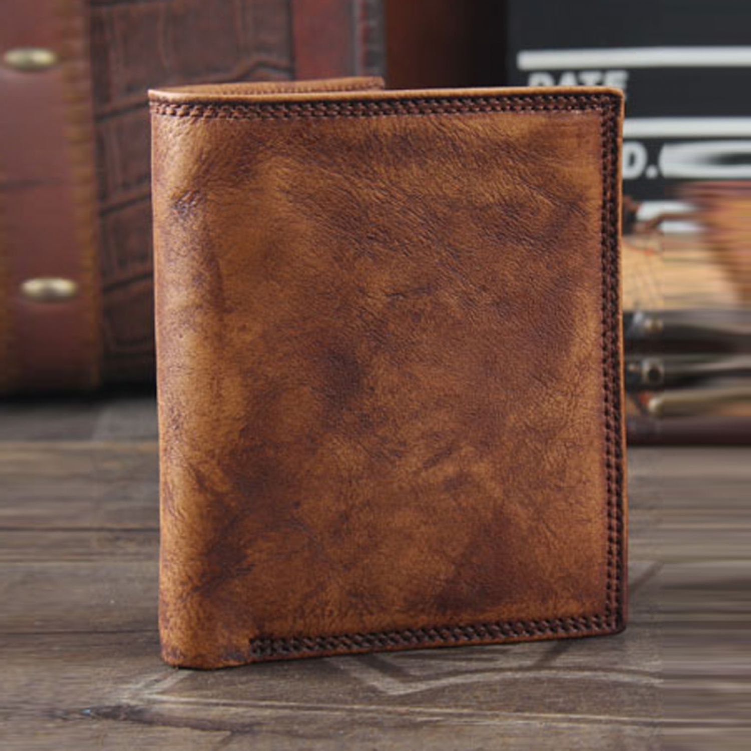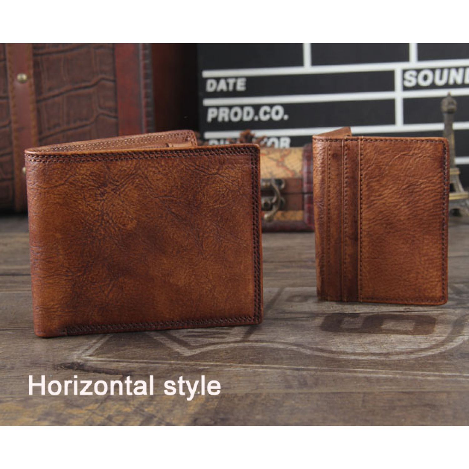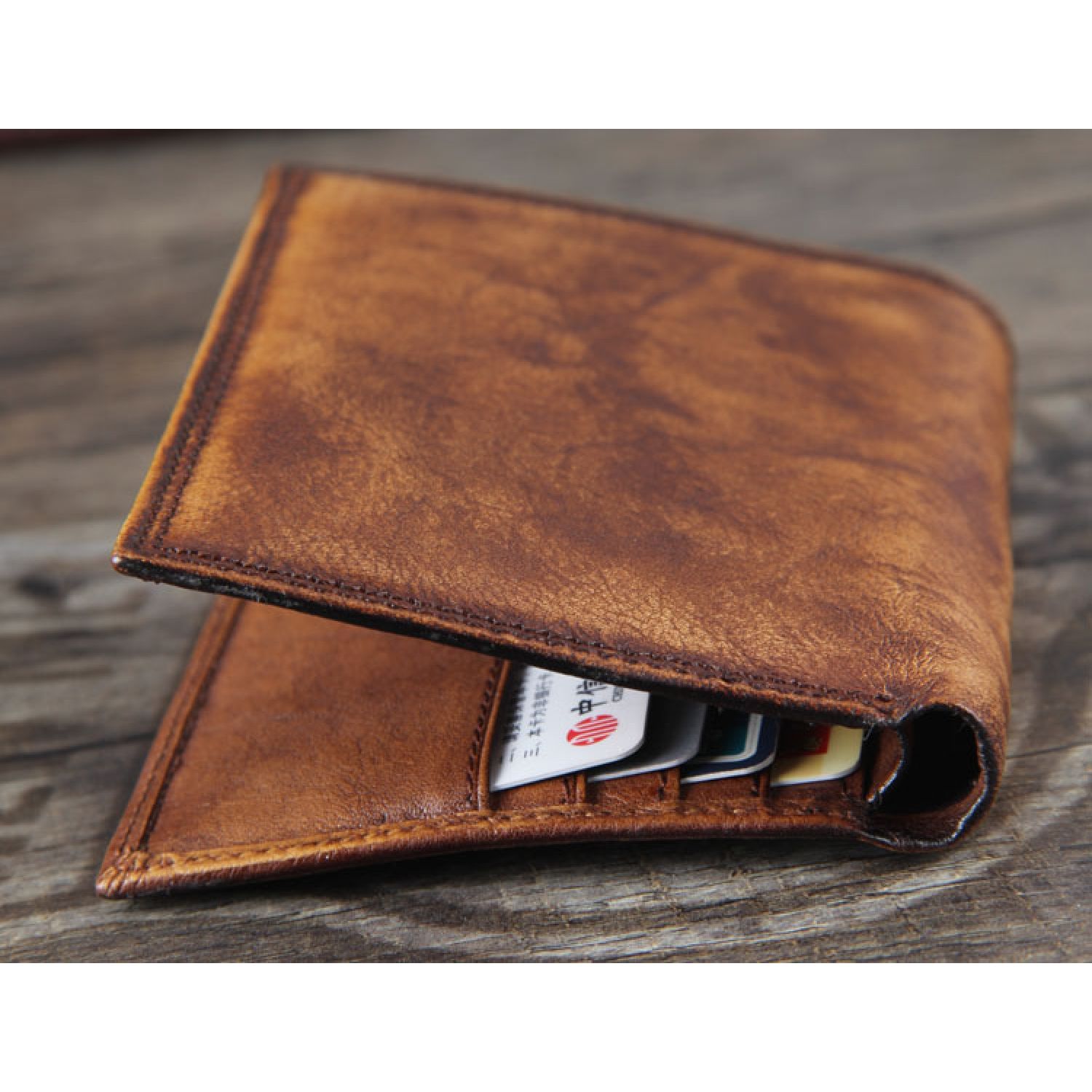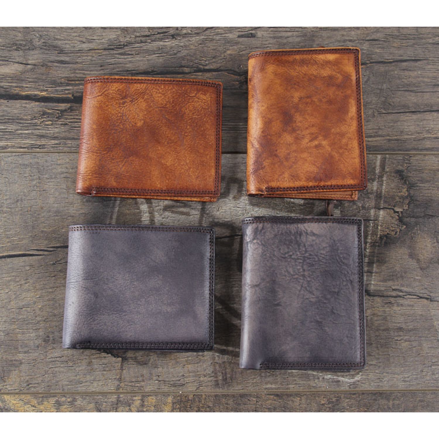 Whistleblower Wrinkled First Layer Cowhide Hand Dyed Short Wallet Retro Fashion Brown Horizontal
