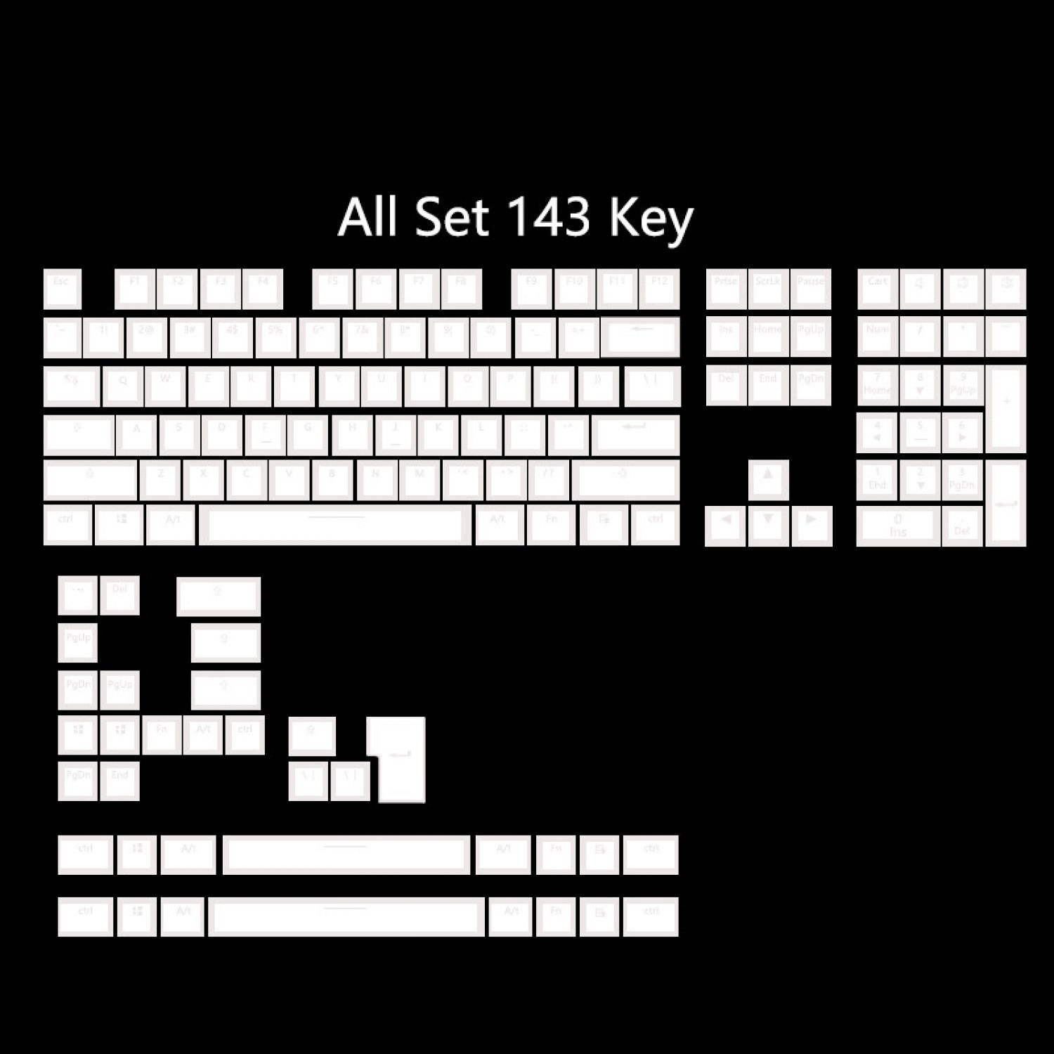 White Pudding Large Full set of 141 Key Sealing Font Keycaps White