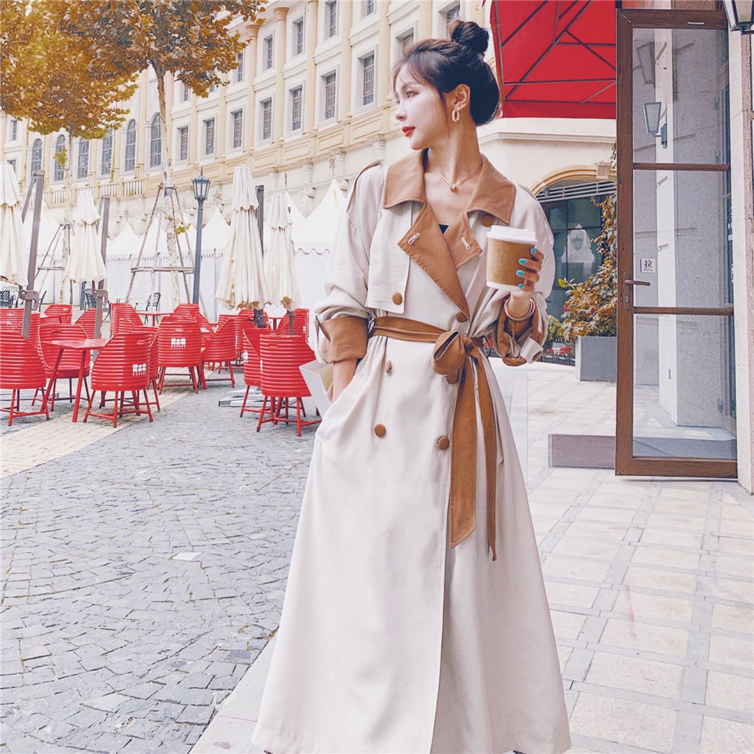 Polyester women's trench coat*1