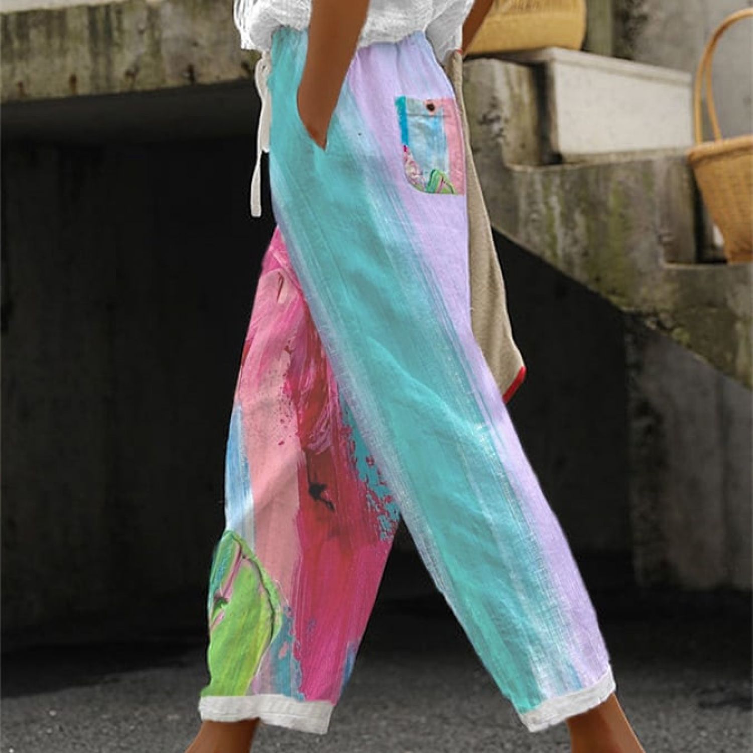 Women's Cotton And Linen Printing Paste Bags Casual Pants 3 Style S