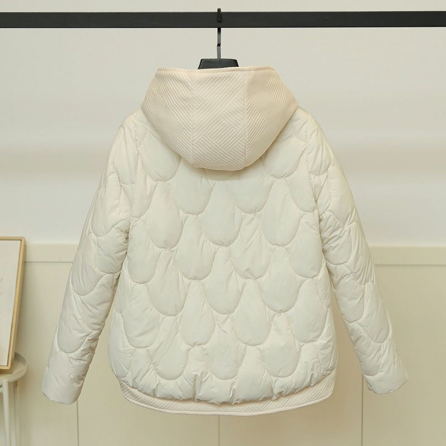 Women's Cotton-padded Short Fake Two-piece Hooded Casual Coat White S