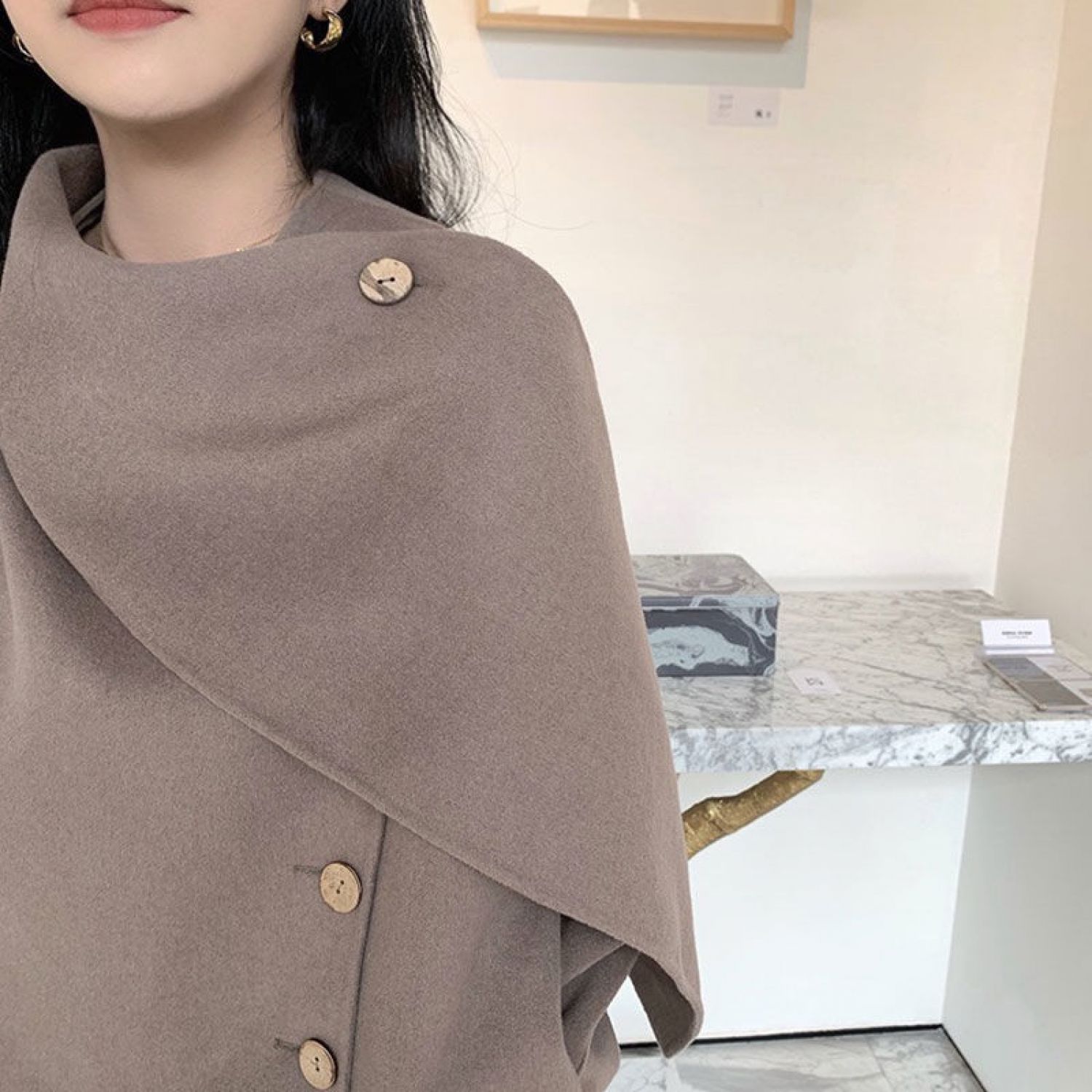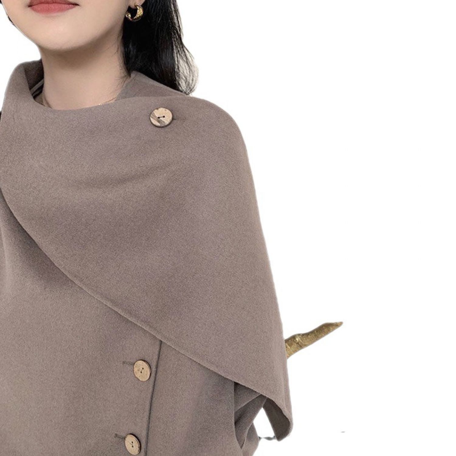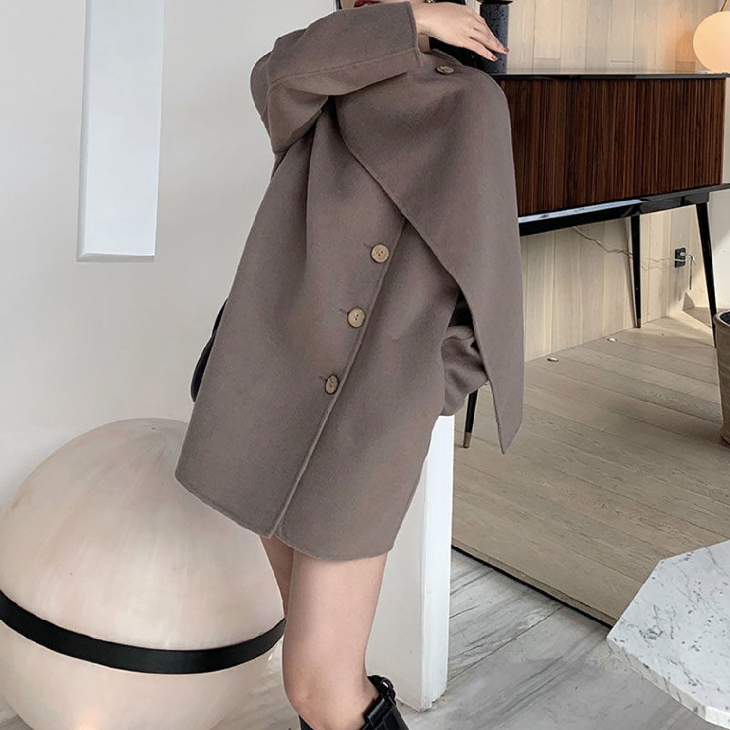 Women's Design Scarf Woolen Coat Gray Camel XS