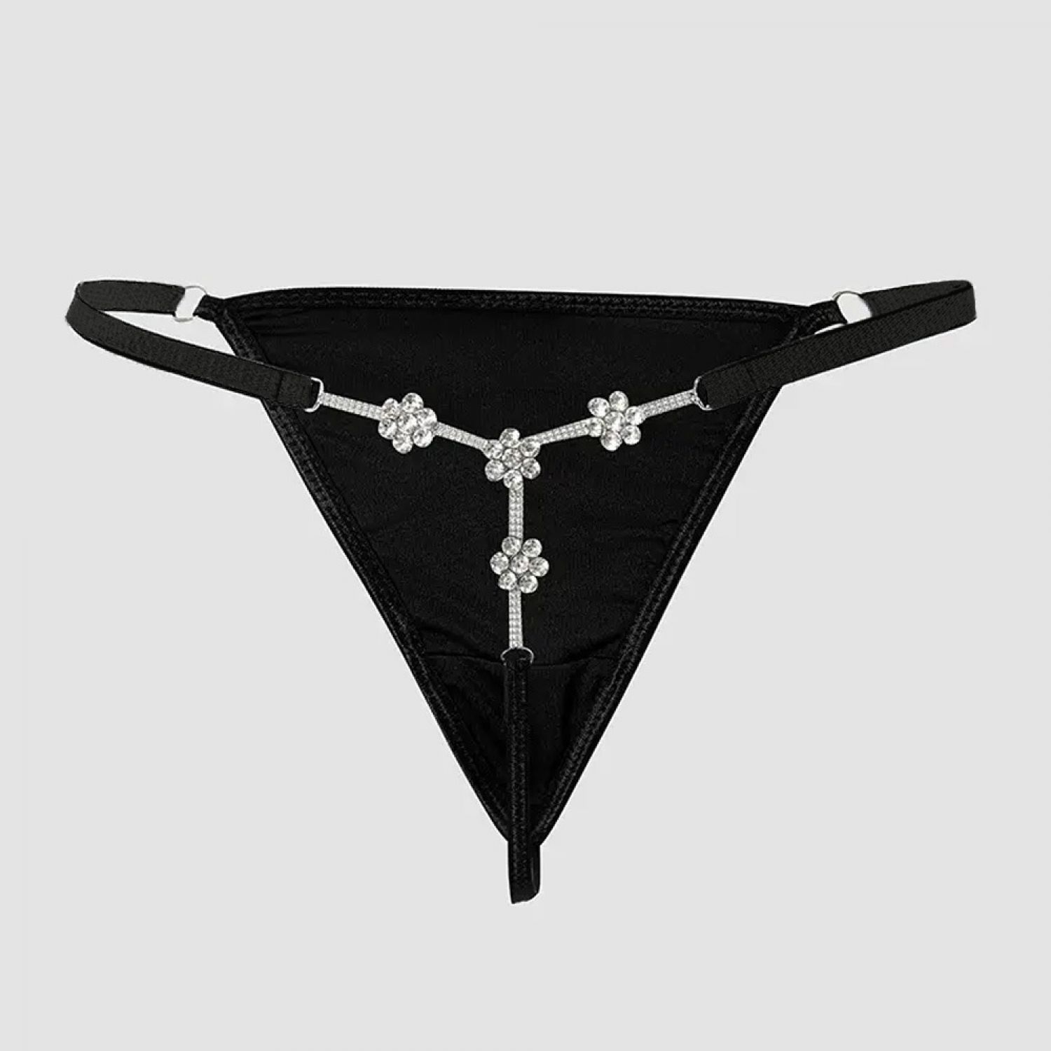 Women's Diamond Embellished Floral Sexy Rhinestone Thong Gold