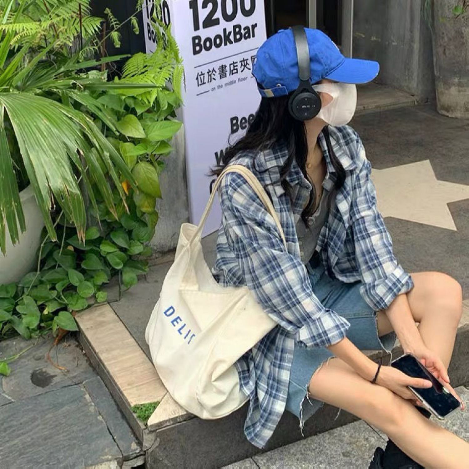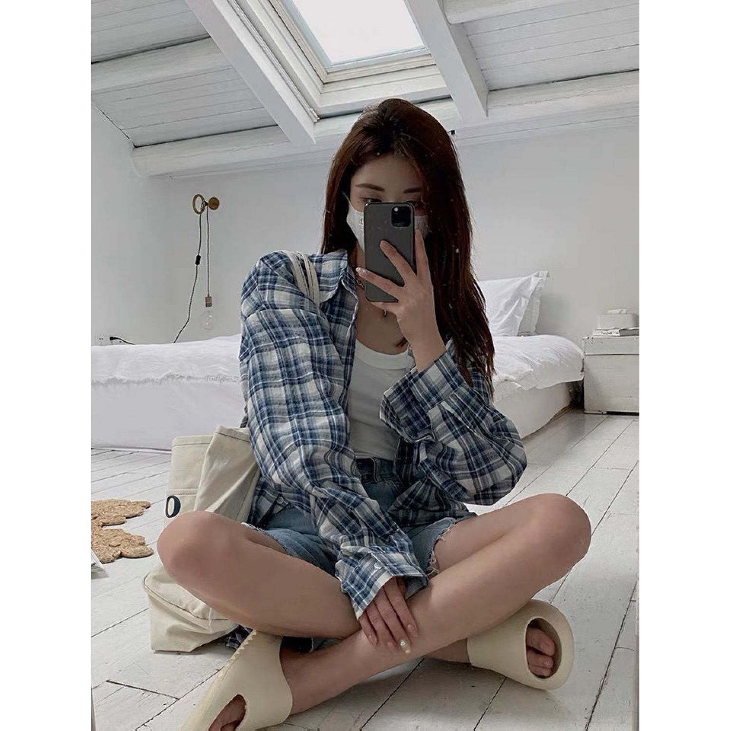 Color: blue and white plaid