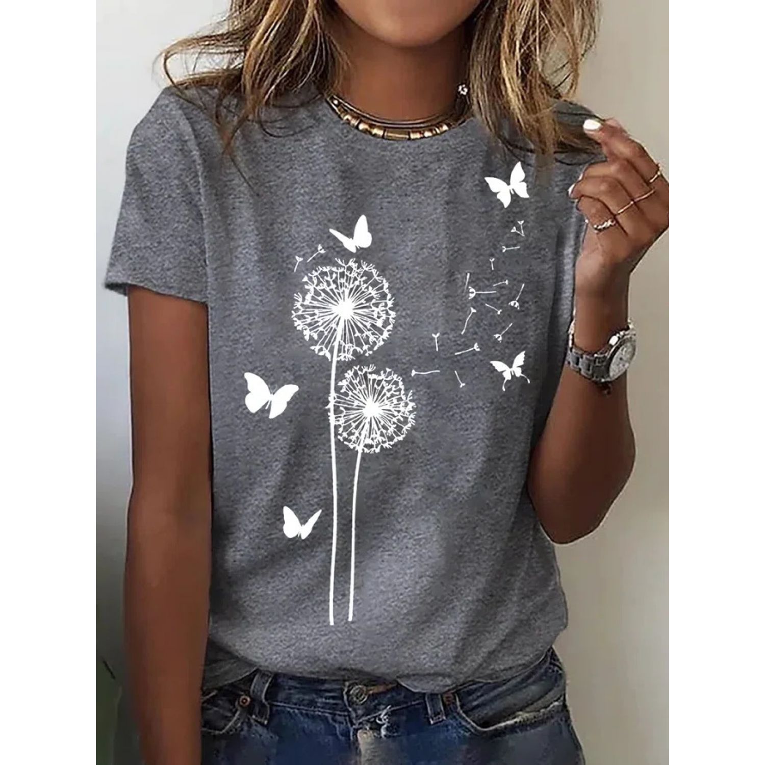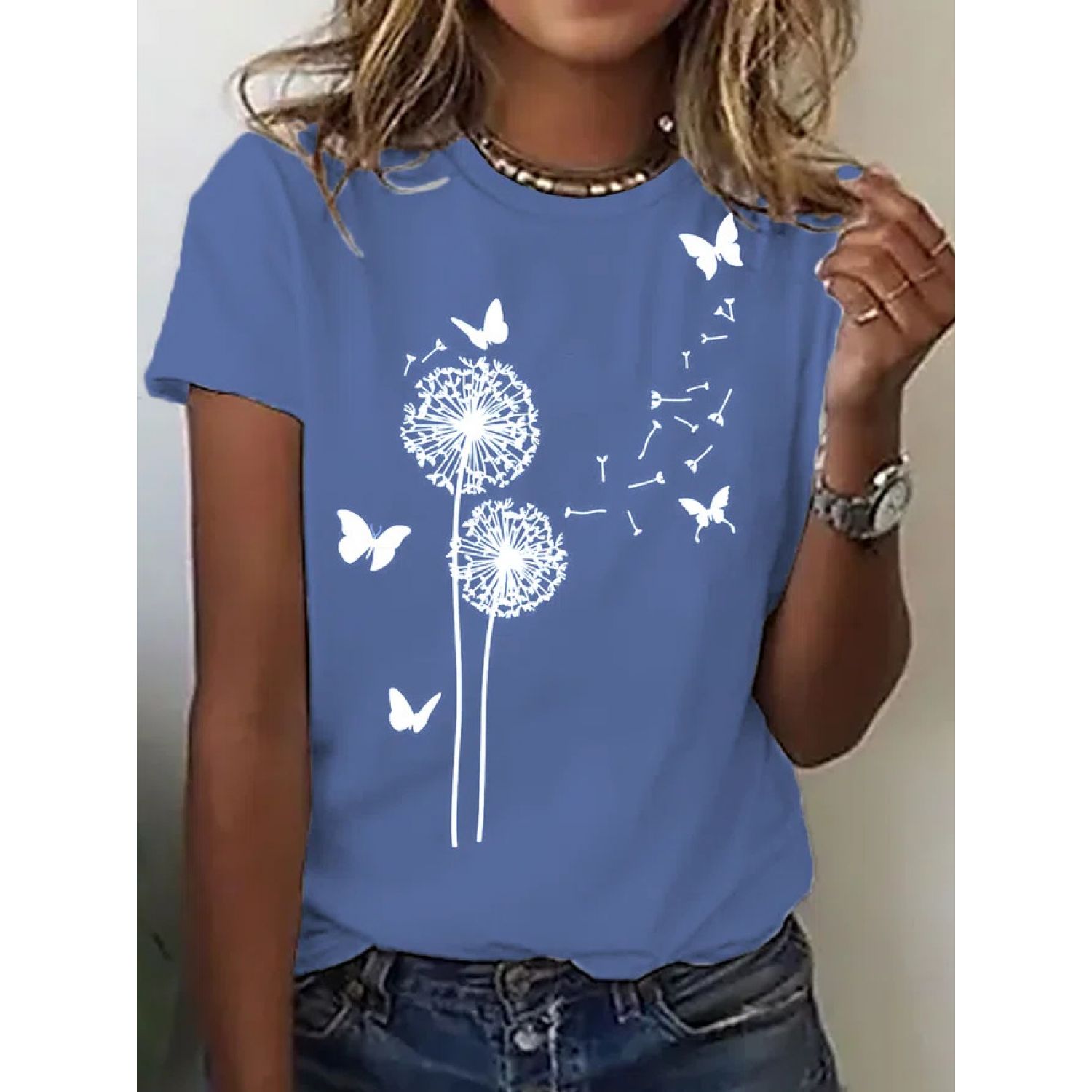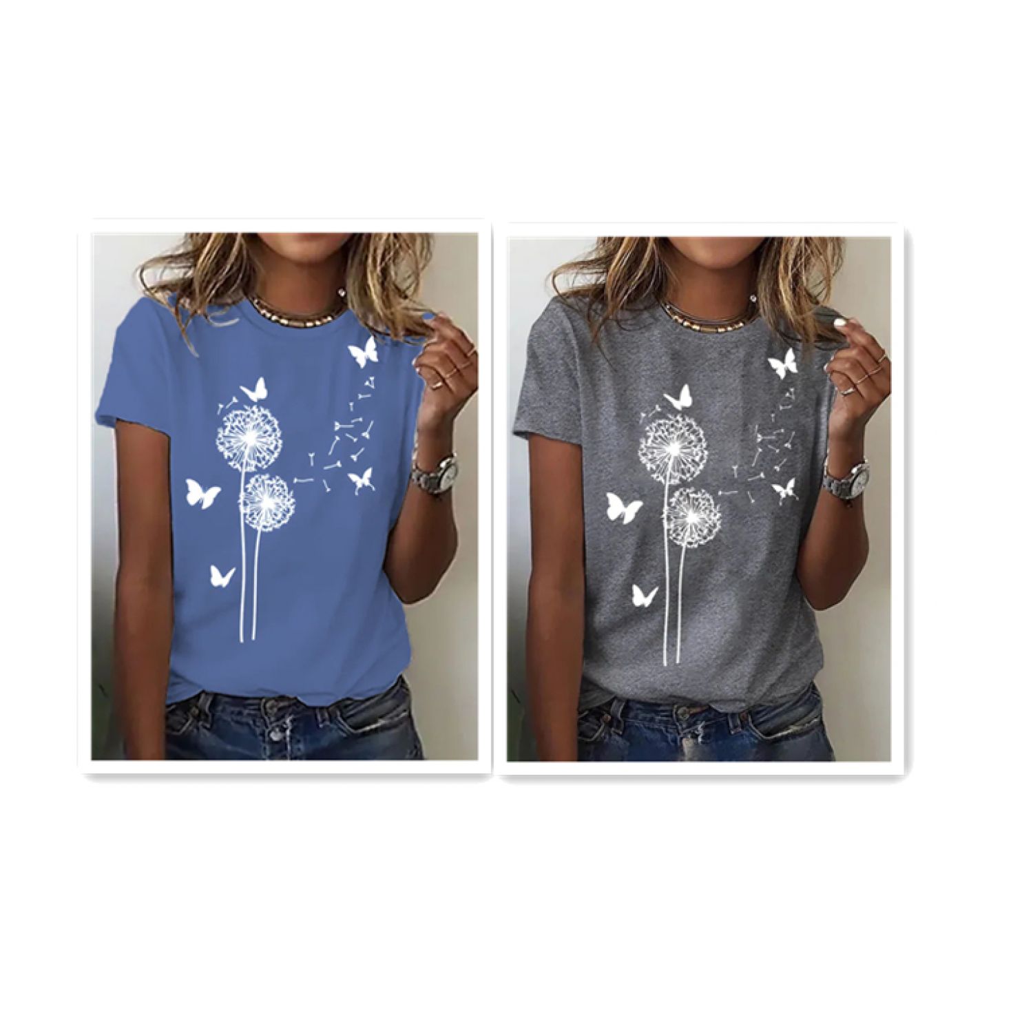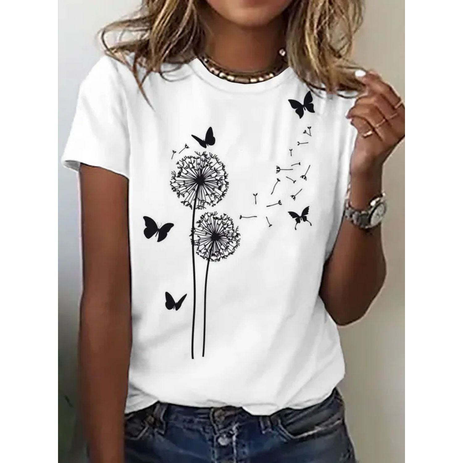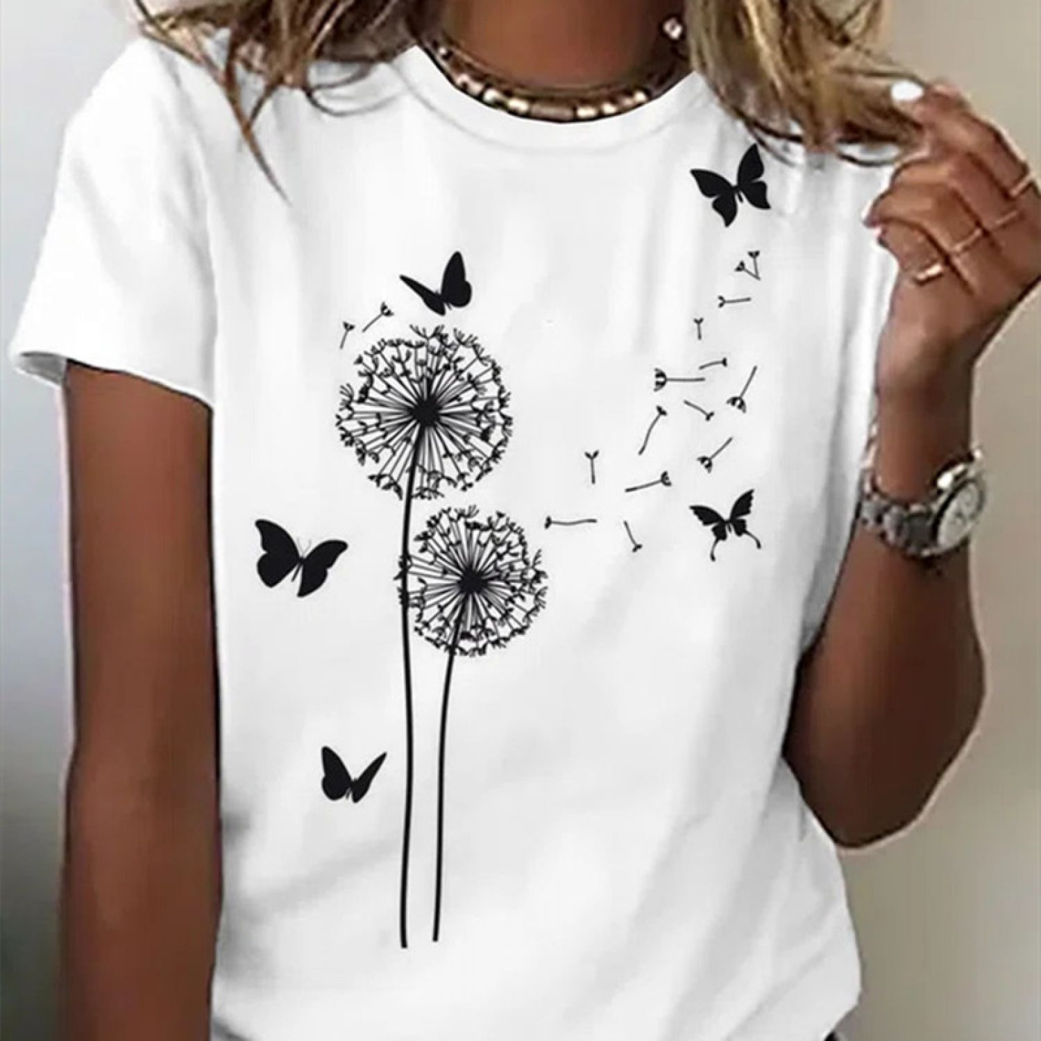Women's Fashion Casual Round Neck Loose T-shirt 02 Style S